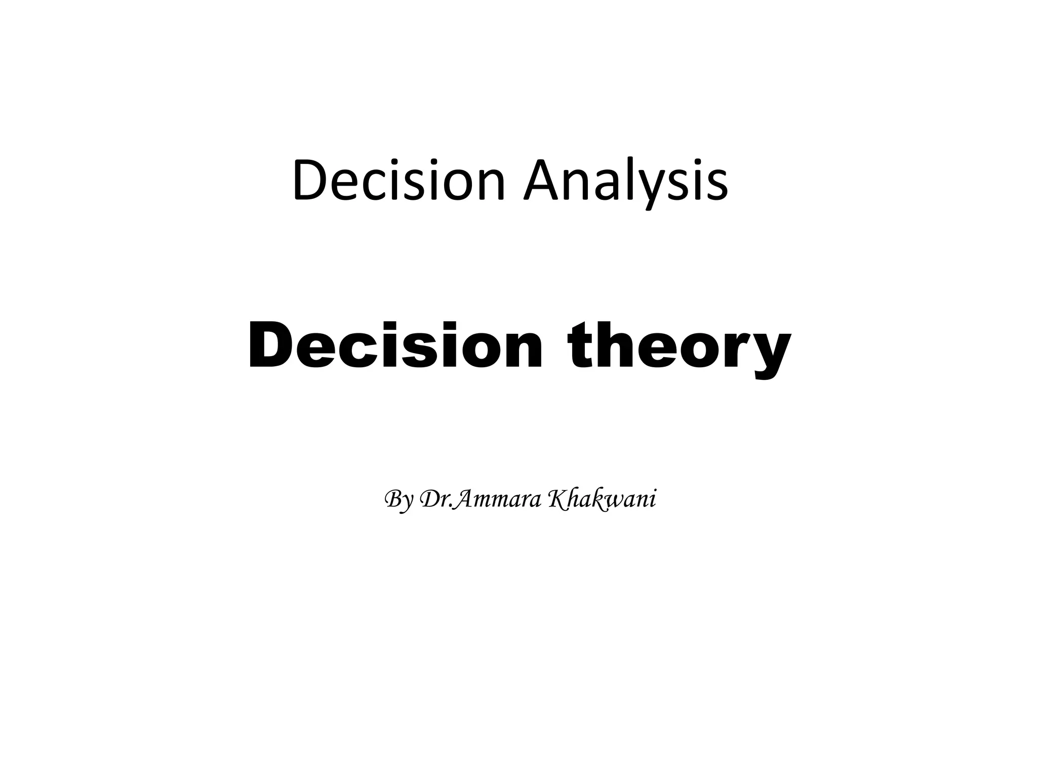 The document discusses decision analysis and outlines the steps involved in making good decisions, including clearly defining the problem, listing alternatives and outcomes, evaluating alternatives using decision models, and selecting the best alternative. It provides an example of a lumber company evaluating whether to expand its product line by manufacturing backyard storage sheds, walking through the steps of defining the problem, listing alternatives, assessing potential profits in favorable and unfavorable market conditions, and selecting the optimal alternative using a decision table.