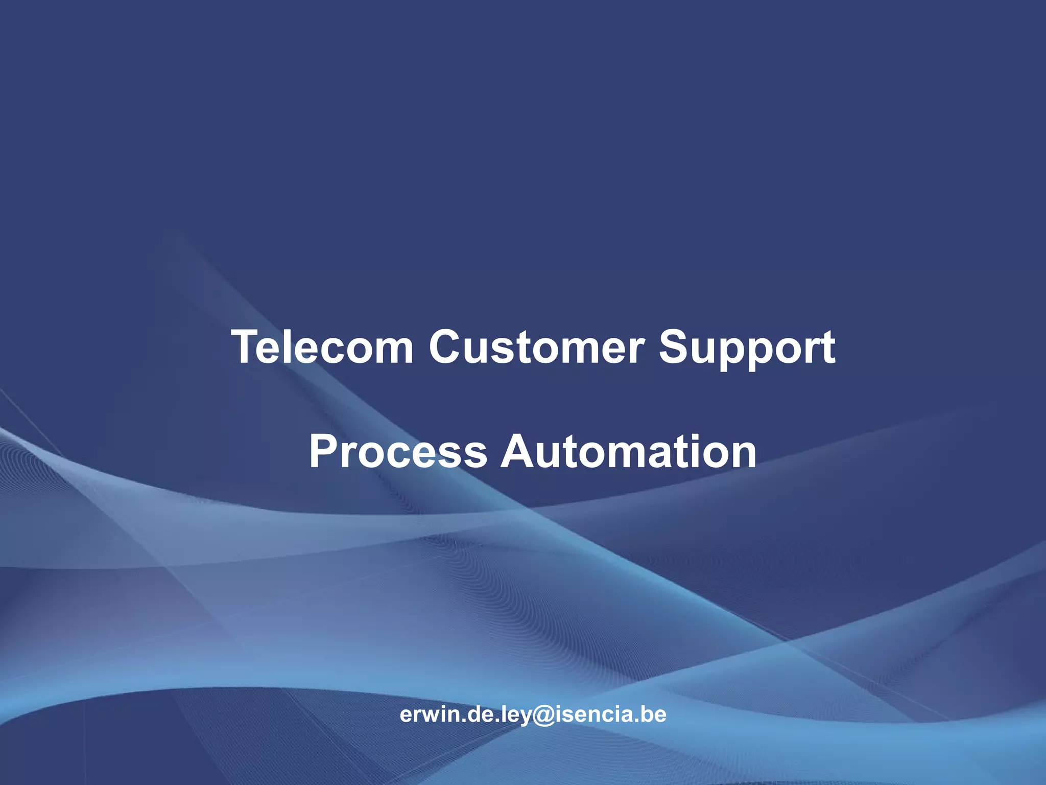 This document discusses automating telecom customer support processes using a system called DARE (Diagnosis And Repair Engine). Key points: