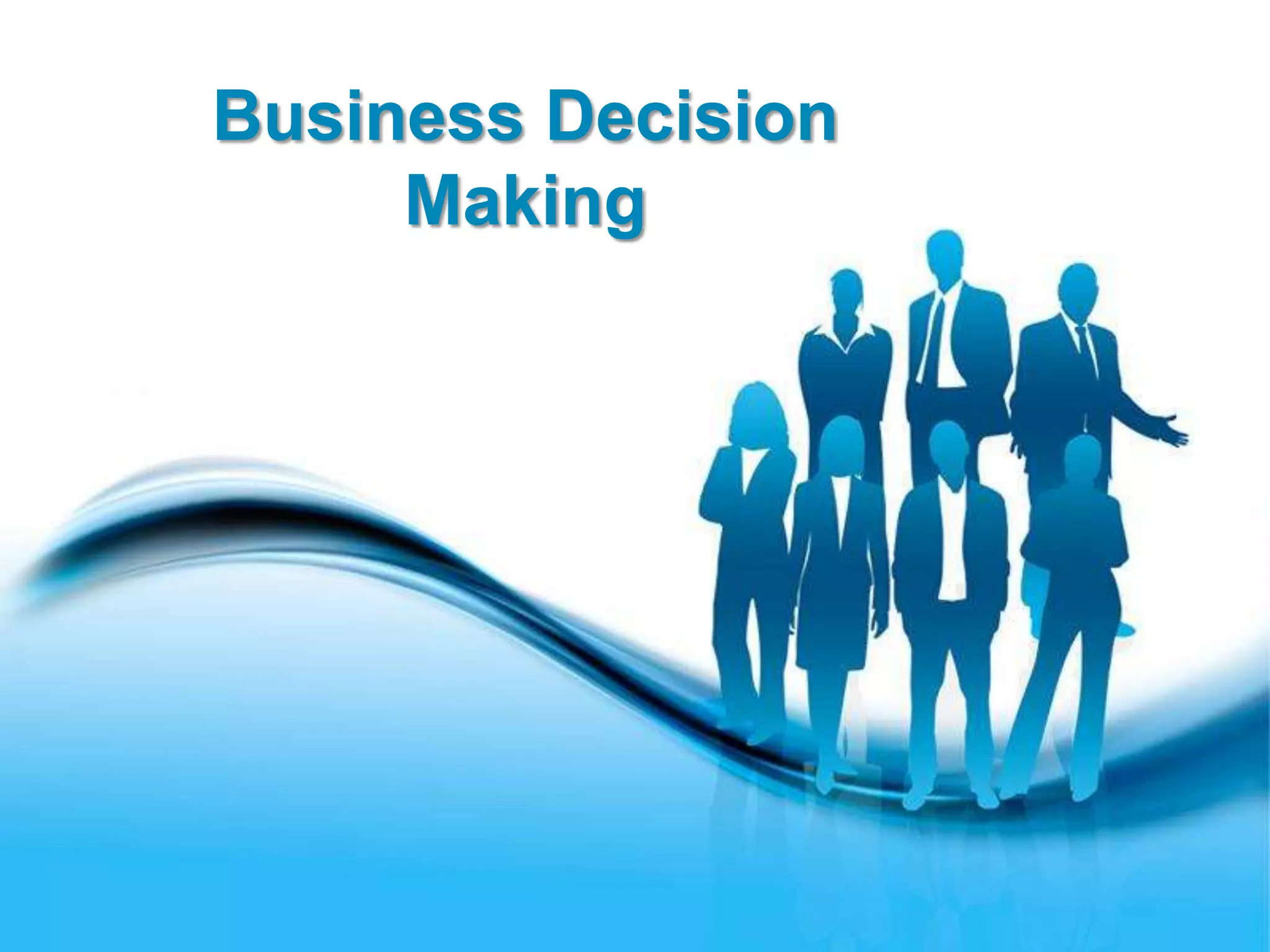 The document provides an overview of business decision making. It discusses key concepts such as the types of decisions managers make, the decision-making process, models of decision making, and tools that can be used. Some of the main points covered include: