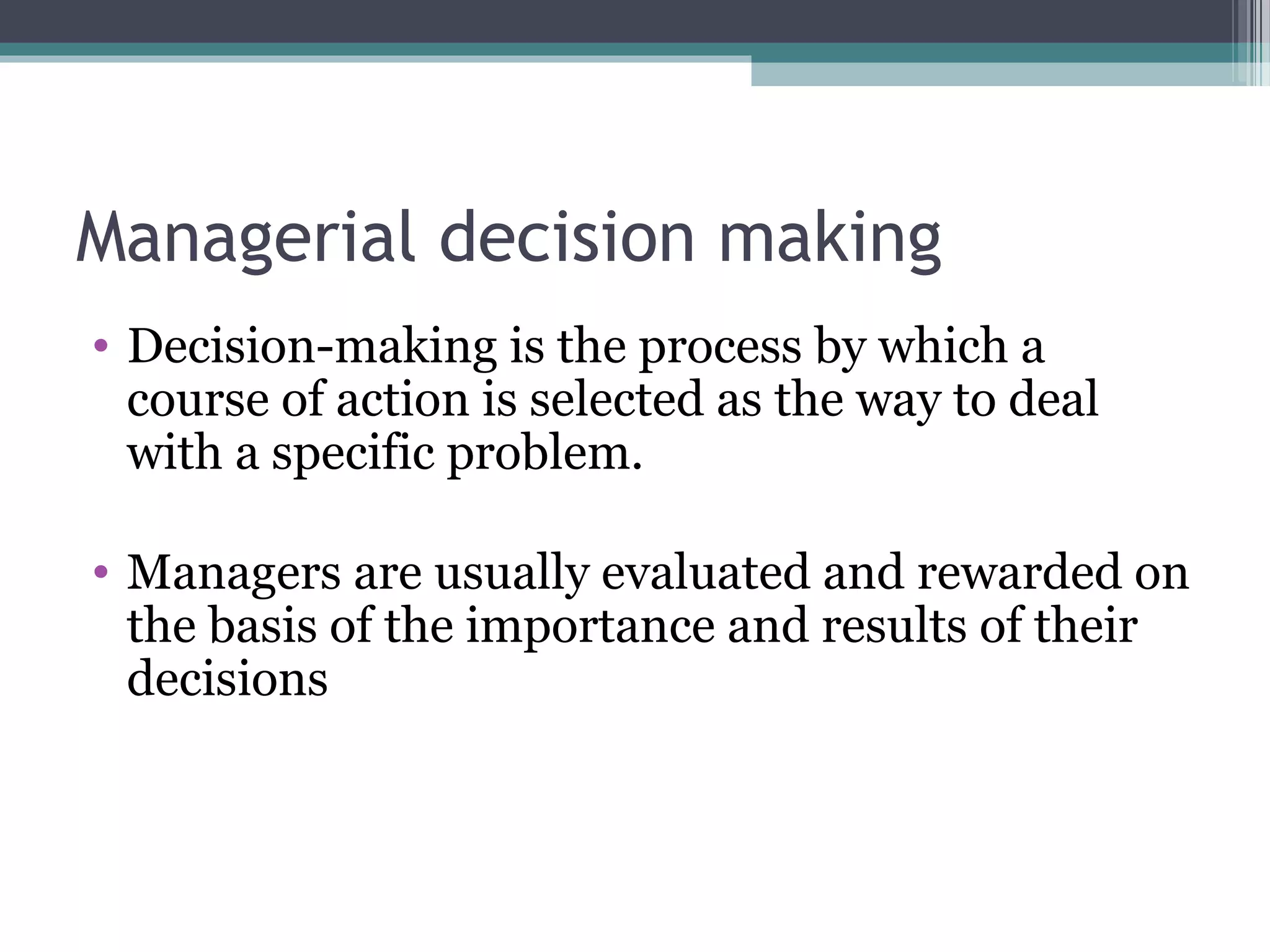 This document discusses managerial decision making and the rational decision making process. It describes how managers are evaluated based on their decisions and the importance of results. The rational decision making process is similar to strategic planning and helps managers evaluate alternatives systematically. While rational decision making aims to find the best solution, it has limitations like not considering all alternatives due to constraints of time, information and uncertainty. The document also outlines the typical steps in a managerial decision making process and how to make a business plan.
