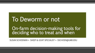 To Deworm ornot On-farm decision-making tools for deciding who to treat and when SUSAN SCHOENIAN  SHEEP & GOAT SPECIALIST  SSCHOEN@UMD.EDU