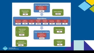 - Common algorithms for building decision trees include ID3, C4.5, C5.0, and CART. They use criteria like information gain, Gini index, and classification error to determine the best attributes to split on.