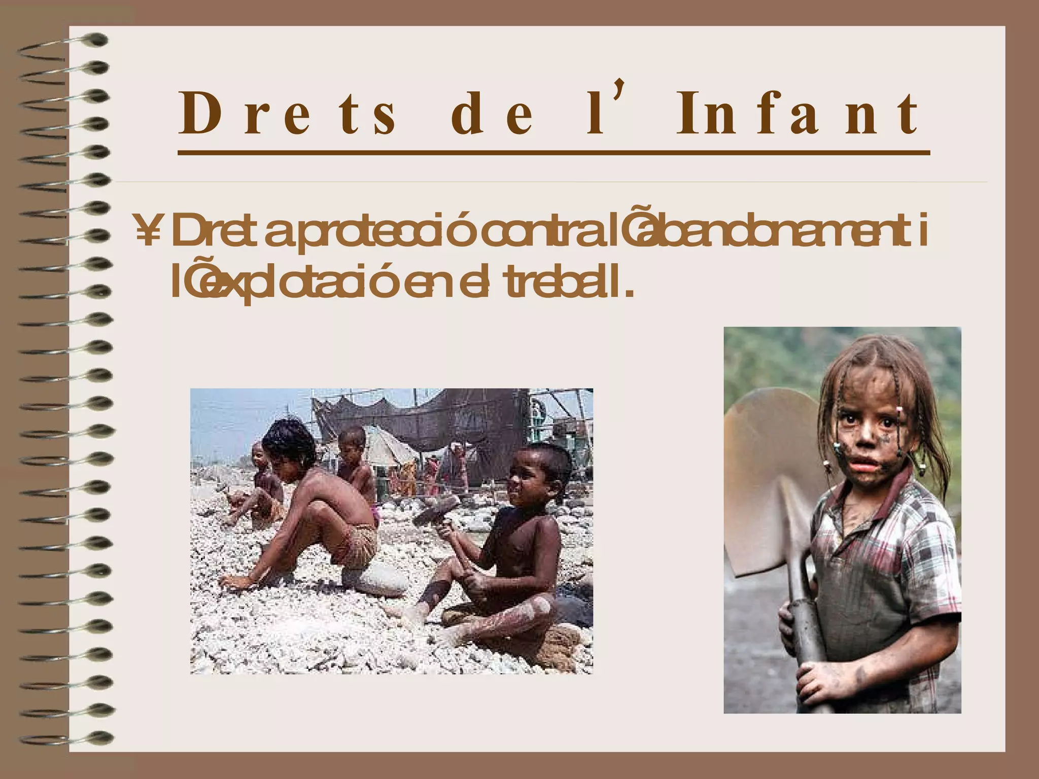 Explotació infantil Eltreball infantil és l'ús de nens per a realitzar treball a canvi de remuneració econòmica o en espècie. Els casos més coneguts són l'agricultura, la fabricació de catifes, pilotes de futbol ,... Nens de la Fundació Agua de Coco