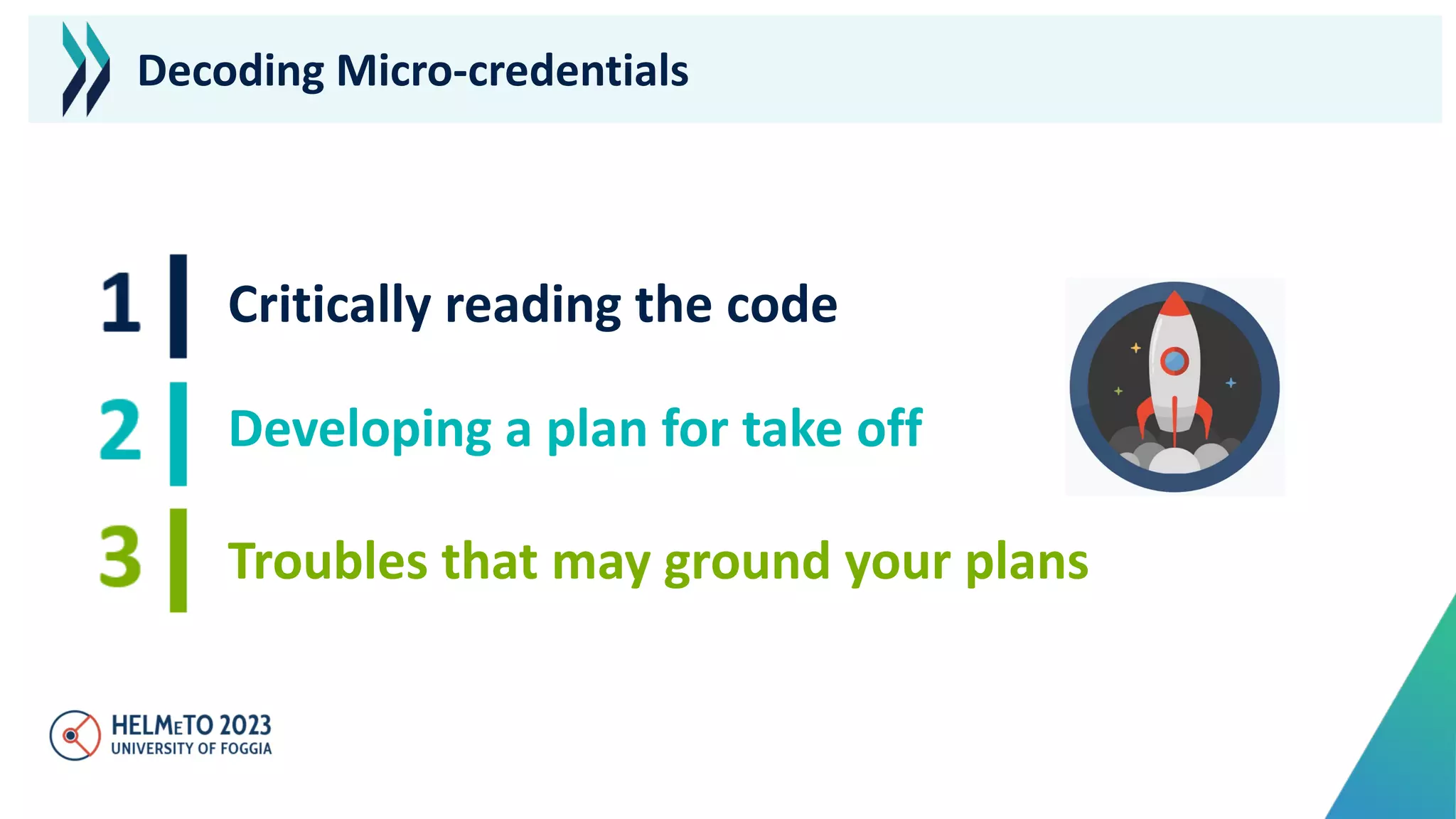 This document discusses micro-credentials and their role in higher education. It addresses developing a plan for implementing micro-credentials, potential troubles that could hinder plans, and decoding micro-credentials. Key points discussed include determining appropriate leadership structures and business models, calculating real costs and addressing demand, and ensuring quality assurance while limiting data gaps. The role of micro-credentials in serving larger strategic goals is also emphasized.