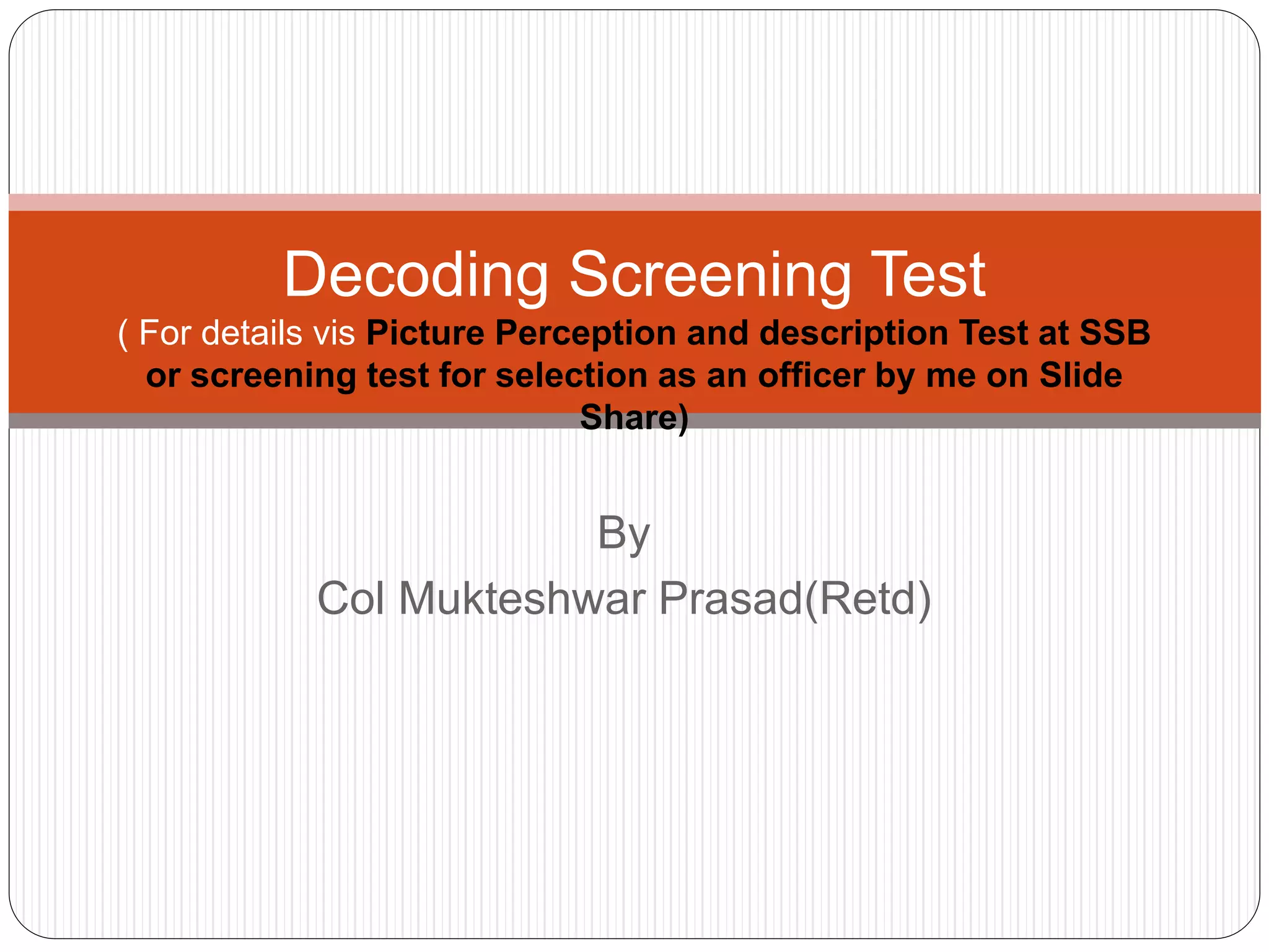 1. The document discusses screening tests for selection as an officer through the NDA examination.