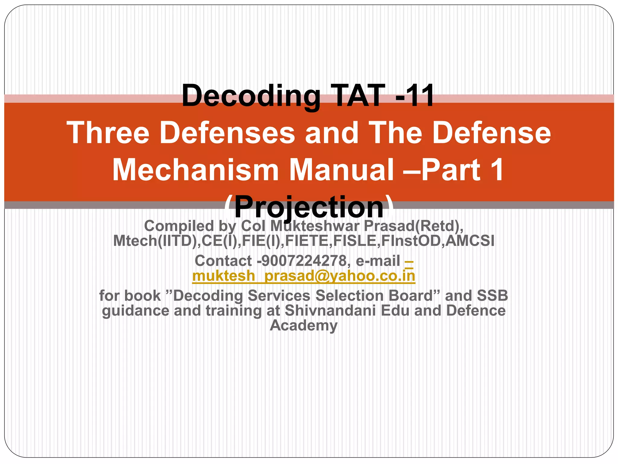 1. The document provides scoring categories for projection as a defense mechanism as measured on the Thematic Apperception Test (TAT).