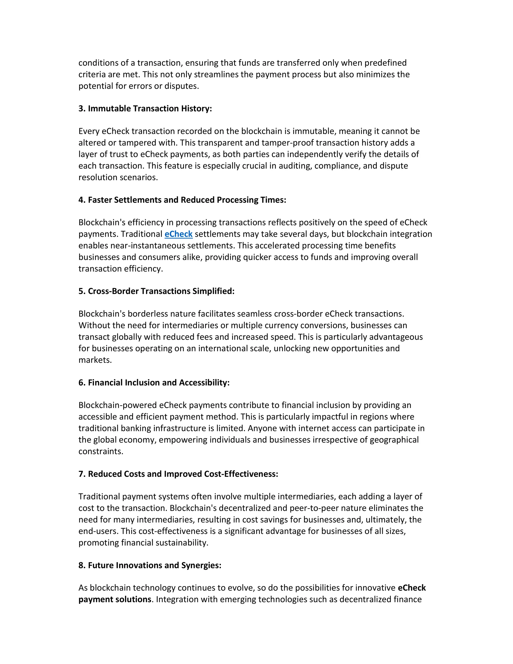 Blockchain's smart contract functionality is a game-changer for eCheck payments. Smart