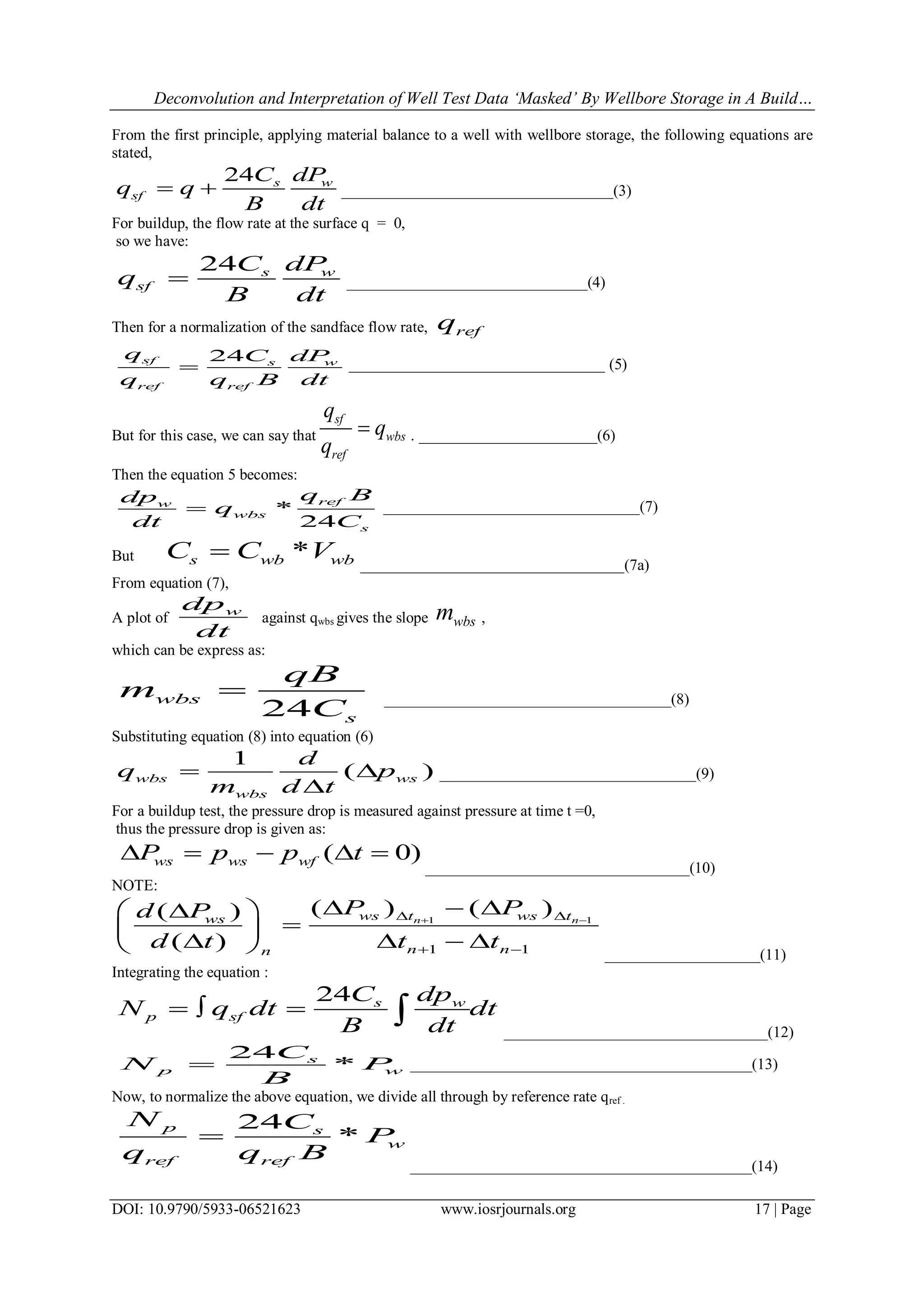 The paper discusses techniques for deconvolving well test data affected by wellbore storage during buildup tests, emphasizing the effectiveness of the material balance deconvolution method over the beta-deconvolution method for accurate reservoir parameter estimation. It compares results obtained from both methods, concluding that while the material balance technique is superior, the beta-deconvolution can still yield useful information during early testing periods. A case study demonstrates the practical application of these methods with specific reservoir parameters.