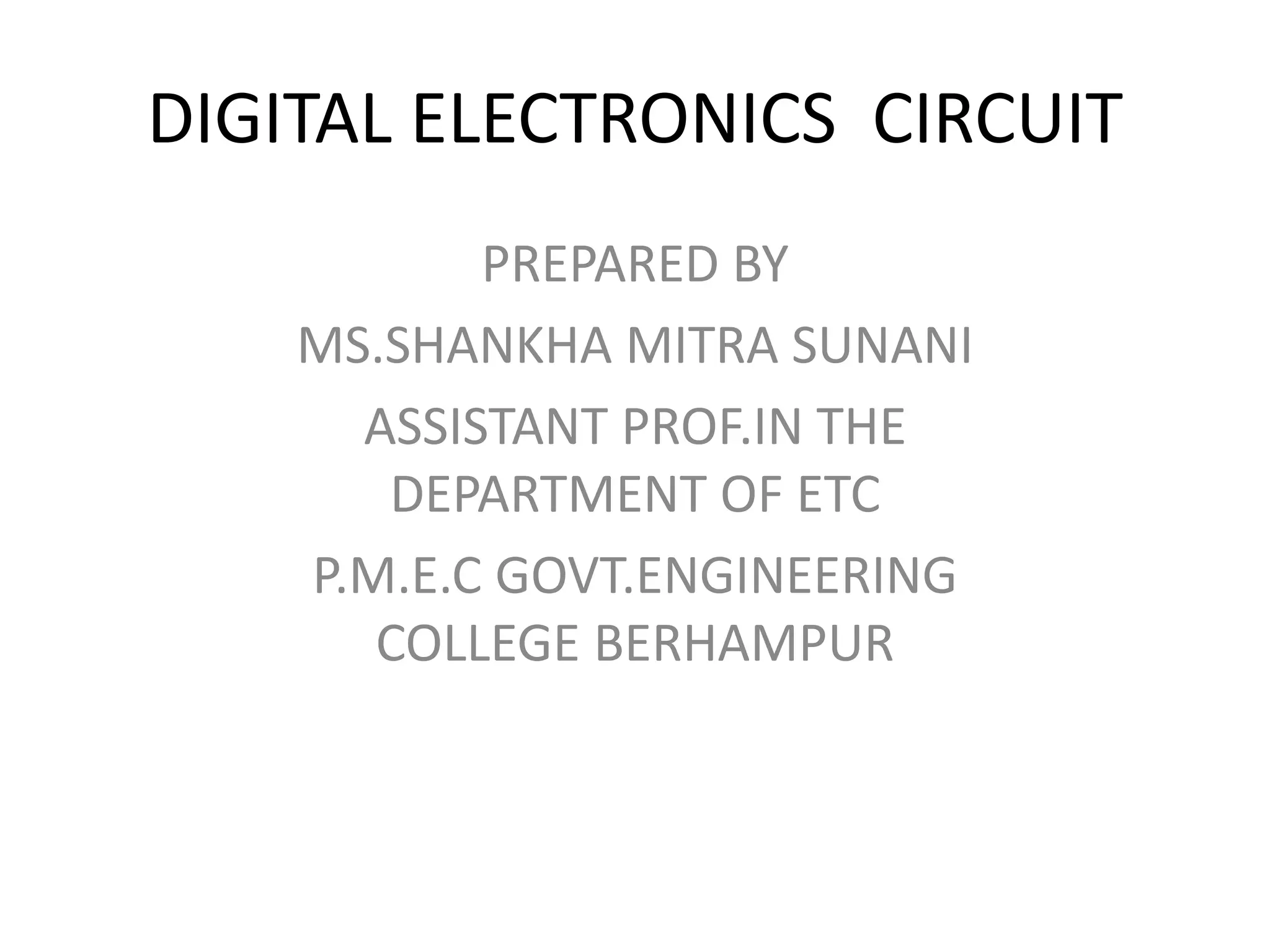 The document provides an overview of digital electronics circuits and topics that will be covered in 3 modules. Module 1 introduces various number systems and their conversions. It also covers Boolean algebra, logic gates, Karnaugh maps. Module 2 discusses combinational logic design including half/full adders, decoders, multiplexers. Module 3 covers sequential logic including flip-flops, counters, shift registers, memory and programmable logic. The document outlines the contents to introduce digital electronics circuits concepts.