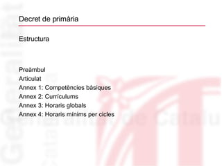 Decret de primàriaPreàmbul Referència a l’Estatut de Catalunya i a la Llei Justificació del Decret Contingut del Decret