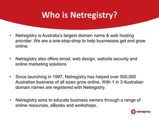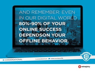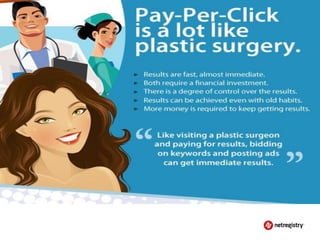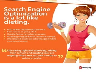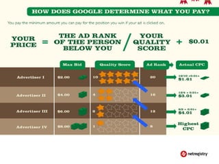 The document discusses various topics related to running a successful website including search engine optimization (SEO), search engine advertising (PPC), and social media marketing. It provides an overview of each topic, highlighting key aspects like the importance of keyword research for SEO, how paid advertising can help drive traffic, and how social media allows businesses to engage with customers online. The presentation also emphasizes the importance of understanding customer needs and providing valuable content across online channels.