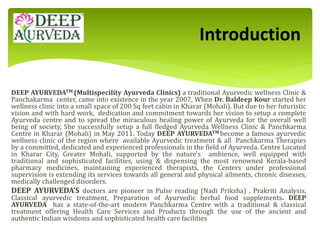 Deep Ayurveda is a prominent Ayurveda wellness clinic and Panchakarma center founded by Dr. Baldeep Kour in 2007, offering a range of traditional Ayurvedic treatments to address various health concerns. The clinic combines modern facilities with classical Ayurvedic practices and is supported by a team of experienced professionals, aiming to expand its services through franchising partnerships across India. With a vision to revolutionize the Ayurvedic healthcare industry, Deep Ayurveda focuses on holistic healing and high-quality patient care while providing franchise opportunities to entrepreneurs.
