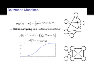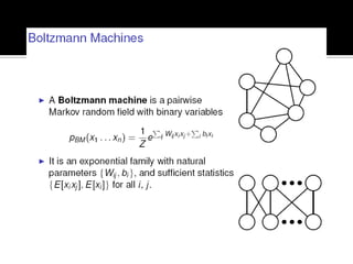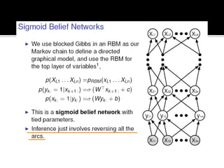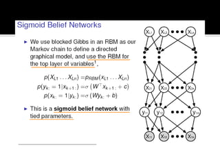 Deep Belief Nets (DBNs) are stacks of Restricted Boltzmann Machines (RBMs) that form a deep neural network architecture. RBMs are energy-based models that can be trained layer-by-layer to learn hierarchical representations of data. This presentation discusses how RBMs are used to learn the weights of DBNs in a greedy, unsupervised manner by treating the hidden units of one RBM as the visible data for the next RBM. Fine-tuning of the entire DBN can then be done with backpropagation. The paper demonstrates state-of-the-art performance of DBNs on MNIST handwritten digit recognition.