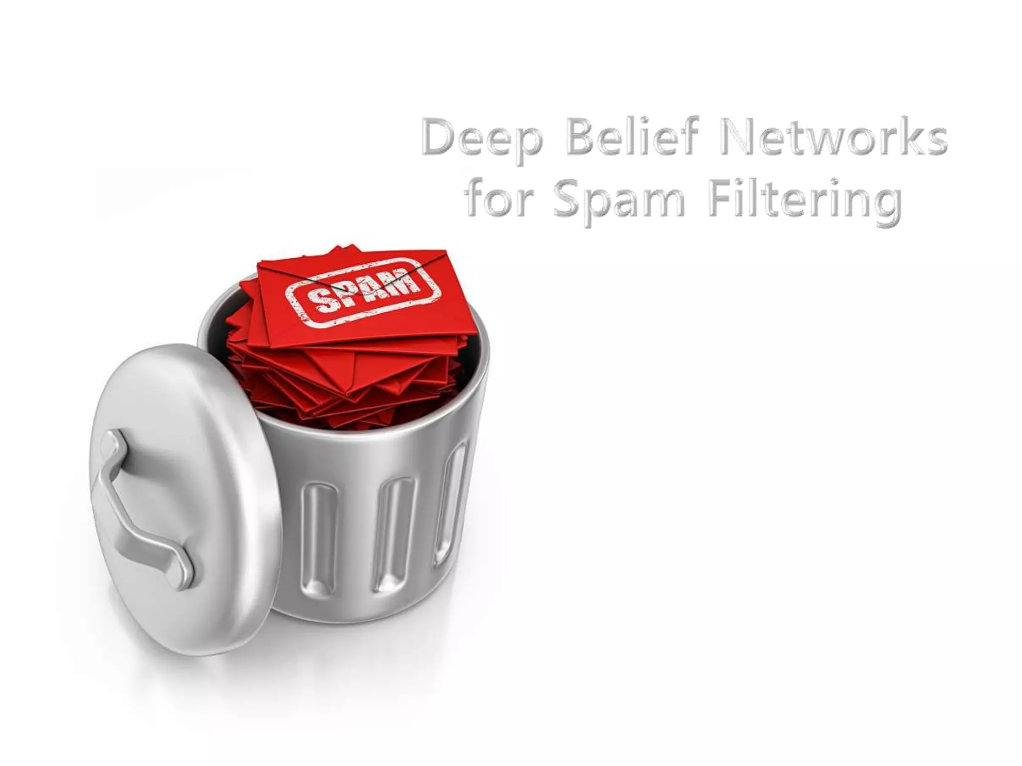 The document describes using deep belief networks (DBNs) for spam filtering of SMS and email messages. It discusses: