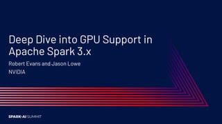 The document details advancements in GPU support in Apache Spark 3.x, highlighting features such as accelerated SQL and DataFrames, GPU-aware scheduling, and data discovery for resource management. It showcases performance comparisons between GPU and CPU processing in ETL tasks, illustrating significant time and cost savings. Future developments include open sourcing the RAPIDS accelerator and enhancing support for nested types and higher-order functions.