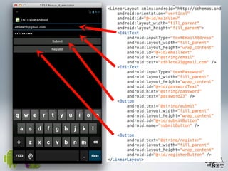 3) The document demonstrates how to create custom views like a calendar and handle intents, fragments, lists, and drawing. It provides best practices for testing on devices due to emulator limitations.