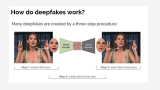 Deepfakes are synthetic media created using artificial intelligence that can manipulate images and videos, often leading to ethical concerns, misinformation, and challenges to trust in media. They have applications in entertainment, education, and social media but also pose threats to privacy and credibility, requiring ongoing efforts in detection and regulation. The importance of media literacy is emphasized to help individuals discern authentic content from manipulated media.