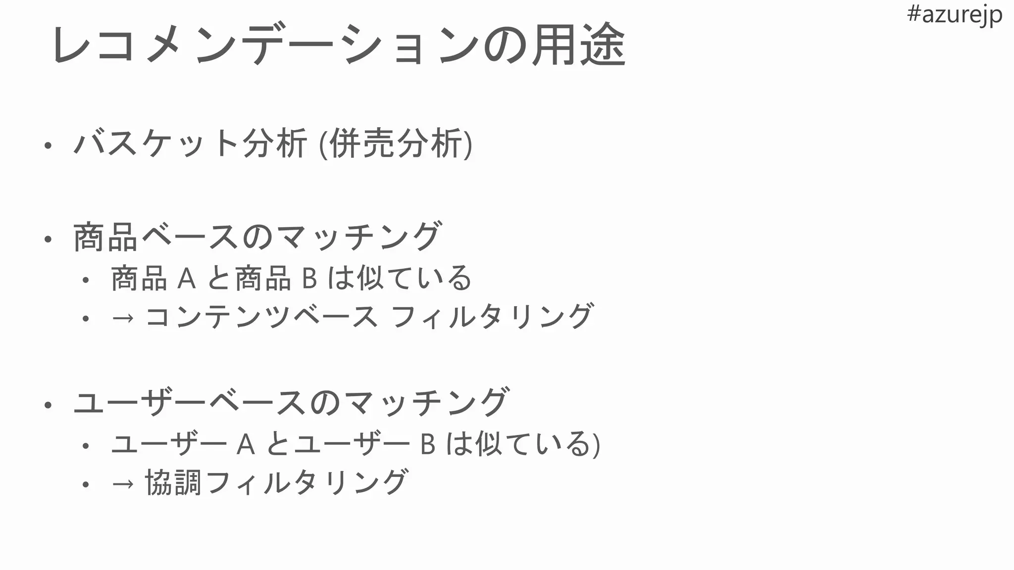 Microsoft Research が開発したラージ・スケール・ベイジアン・ リコメンダー システム – 例えば映画やコンテンツ、その他の商品などのアイテムの評価を 利用し、 学習することができる – リクエストごとにユーザーに対して新しいアイテムをリコメンド することができる – Matchbox のアルゴリズムは協調フィルタリングおよびコンテンツ ベースの リコメンド方式がベース • ※ Matchbox の詳細については以下のサイトからご確認頂けま す Matchbox Recommender System http://research.microsoft.com/en-us/projects/matchbox/ Matchbox: Large Scale Online Bayesian Recommendations (アルゴリズムの詳細) http://msr-waypoint.com/pubs/79460/www09.pdf – 考慮点 • 類似度の計算を選択する事ができず、類似度の値を確認するには工夫が 必要 • 評価の際に、混同行列から各種評価値を作る場合には工夫が必要
