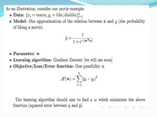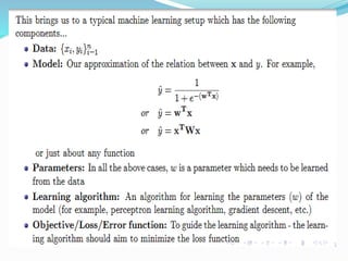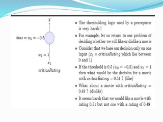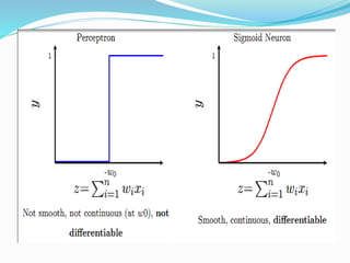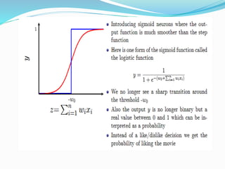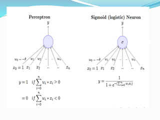 The document discusses the history and concepts of artificial intelligence and machine learning. It describes early models like the McCulloch-Pitts neuron and perceptron, and how they evolved with the introduction of backpropagation and multi-layer perceptrons using sigmoid activation functions. Key algorithms discussed include naive Bayes, k-means clustering, and decision trees. Deep learning concepts like convolutional neural networks are also covered at a high level.
