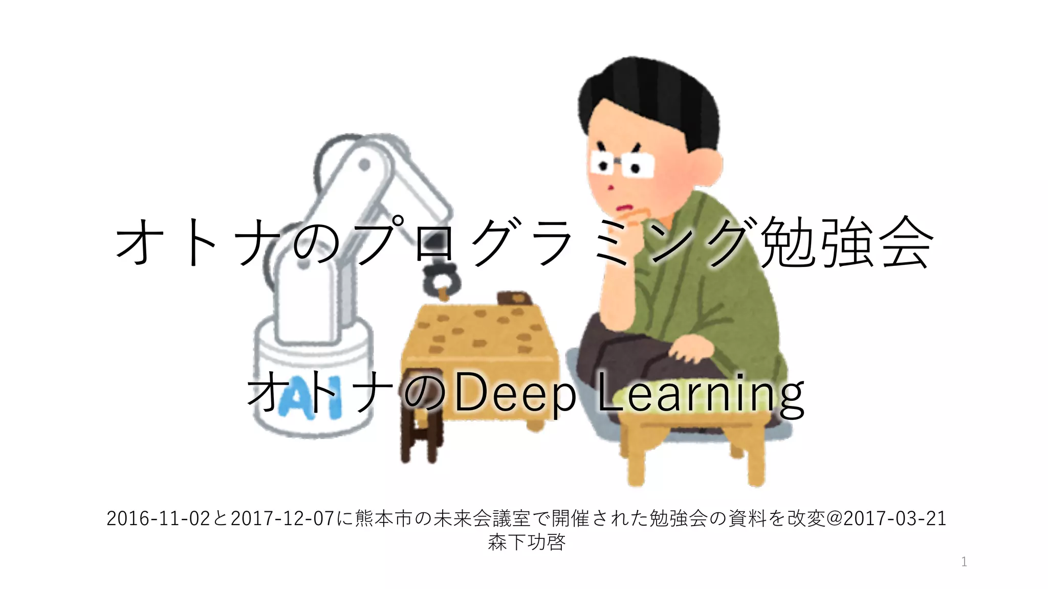 熊本で毎月開催されているオトナのプログラミング勉強会の2016年11月に開催された「オトナのDeep Learning」のスライド資料です。