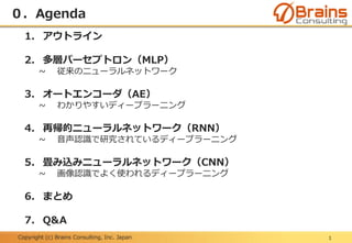 Deep Learningについて、日本情報システム・ユーザー協会(JUAS)のJUAS ビジネスデータ研究会 AI分科会で発表しました。その際に使用した資料です。専門家向けではなく、一般向けの資料です。