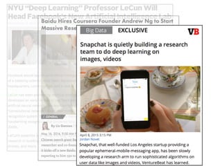 Deep learning is a type of machine learning that uses neural networks with multiple layers between the input and output layers. It allows computational models that are composed of multiple processing layers to learn representations of data with multiple levels of abstraction. Deep learning has achieved great success in computer vision, speech recognition, and natural language processing due to recent advances in algorithms, computing power, and the availability of large datasets. Deep learning models can learn complex patterns directly from large amounts of unlabeled data without relying on human-engineered features.