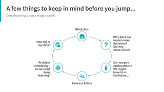 The document provides an overview of deep learning, its significance in various professional domains, and its evolution from traditional artificial intelligence to advanced models implementing neural networks. It highlights key concepts such as supervised and unsupervised learning, various network types including CNNs and RNNs, and discusses challenges like overfitting and the need for robust mathematical understanding. The authors emphasize the rapidly evolving nature of deep learning and the importance of continuously engaging with the field through research and practice.