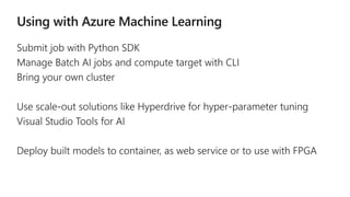 The document discusses a cloud-based AI solution developed for vip.com to enhance their e-commerce operations through deep learning and rapid model iteration using Azure Batch AI and Kubernetes. The system is designed to adapt to different geographical locations and includes a comprehensive tagging system to personalize user experience, significantly improving efficiency and processing time. It highlights the collaboration between vip.com, Caicloud, and Microsoft to implement this scalable solution for global expansion.