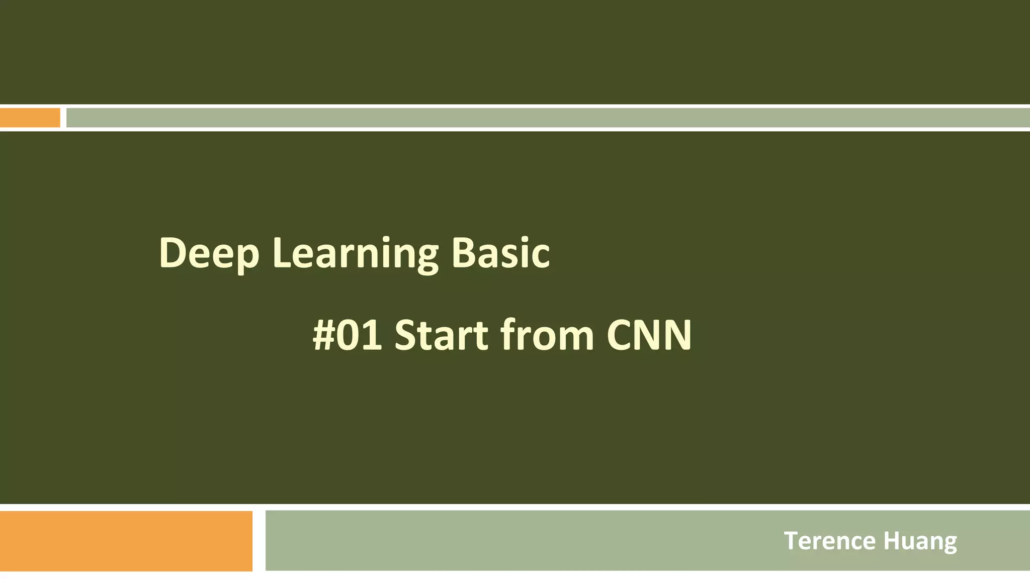 该文档由Terence Huang提供,介绍了深度学习及其与卷积神经网络(CNN)的基础知识,涵盖了相关历史、应用(如图像分析、对象识别)及算法(如反向传播和激活函数)。文中还提及MNNIT数据集的使用和Keras库的基本理解及应用示例。最后讨论了数据增强对CNN模型的影响及深度学习环境的设置。
