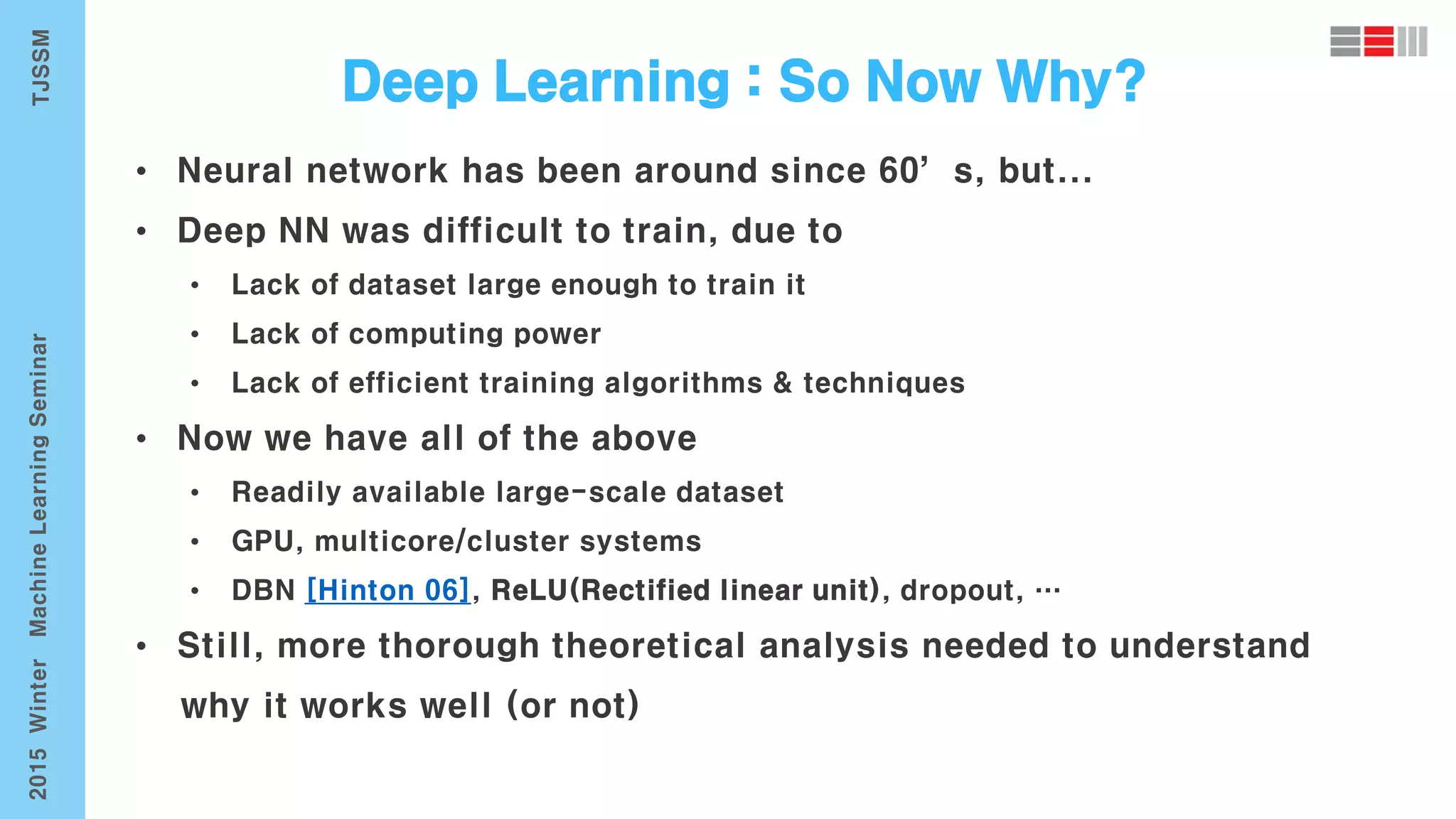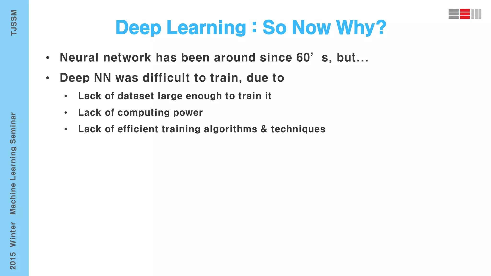 This document discusses the history and development of deep learning and neural networks. It explains that early neural networks from the 1940s-1980s had limitations due to limited computational power. Starting in 2006, deep neural networks enabled more layers of representation to be learned from data in an end-to-end fashion. The document contrasts shallow learning approaches that used hand-crafted features with deep learning, which allows automatic feature extraction directly from data using trainable neural networks.