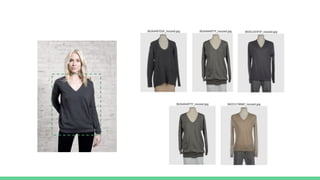 Koby Karp presents on building a deep learning-powered visual search engine for fashion products. He discusses using a convolutional neural network like AlexNet, pre-trained on ImageNet, to encode images into numeric vectors capturing shape, color and texture. These vectors are indexed into a database. New images are encoded and the distance between their vector and database vectors is measured to find and rank similar products. The system was tested on a dataset of 60,000 fashion items, with t-SNE used to visualize image clusters of different categories found by the search engine. In conclusion, Koby discusses collaborating with customers to build prototypes that leverage existing data for innovative applications.