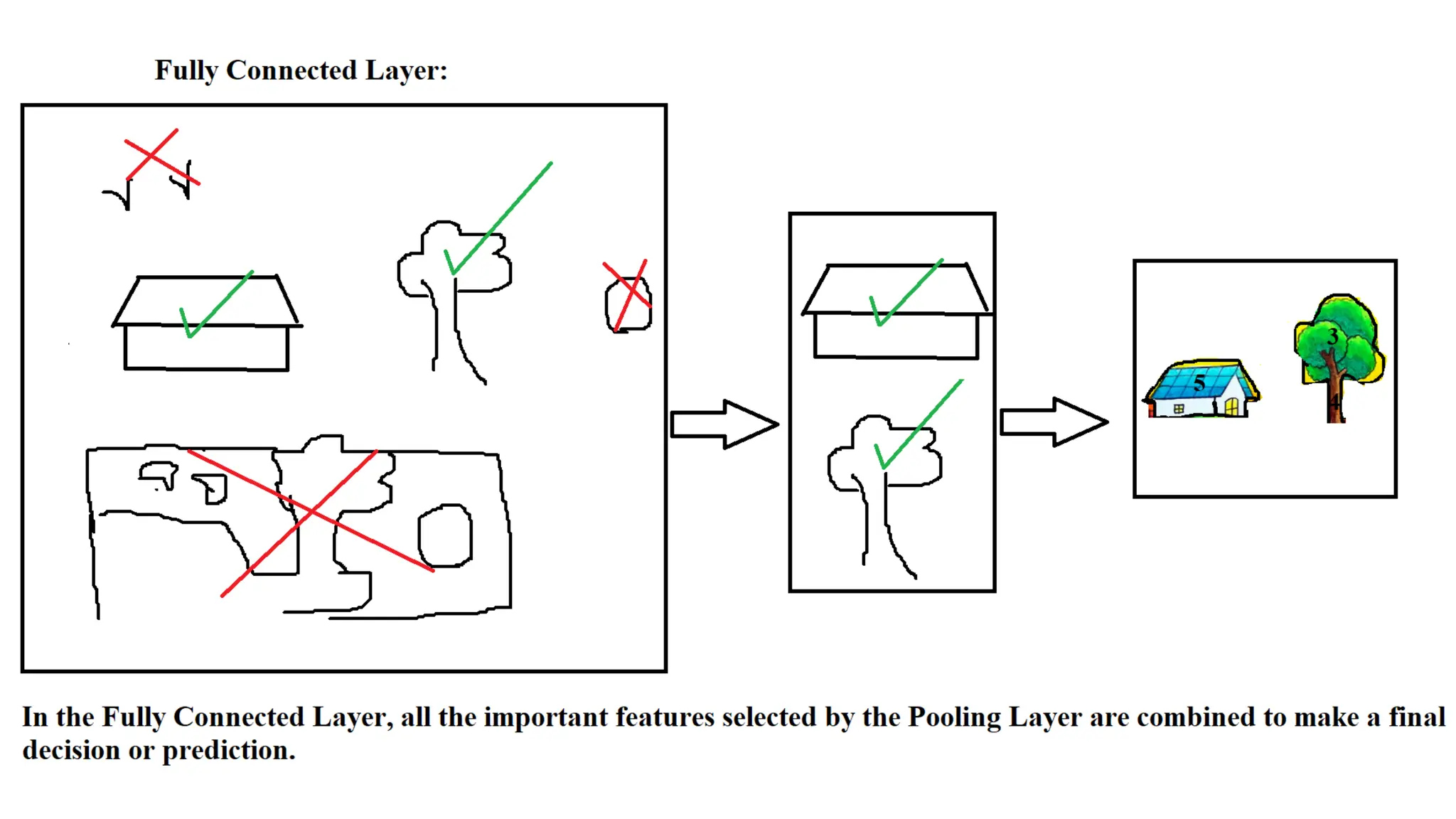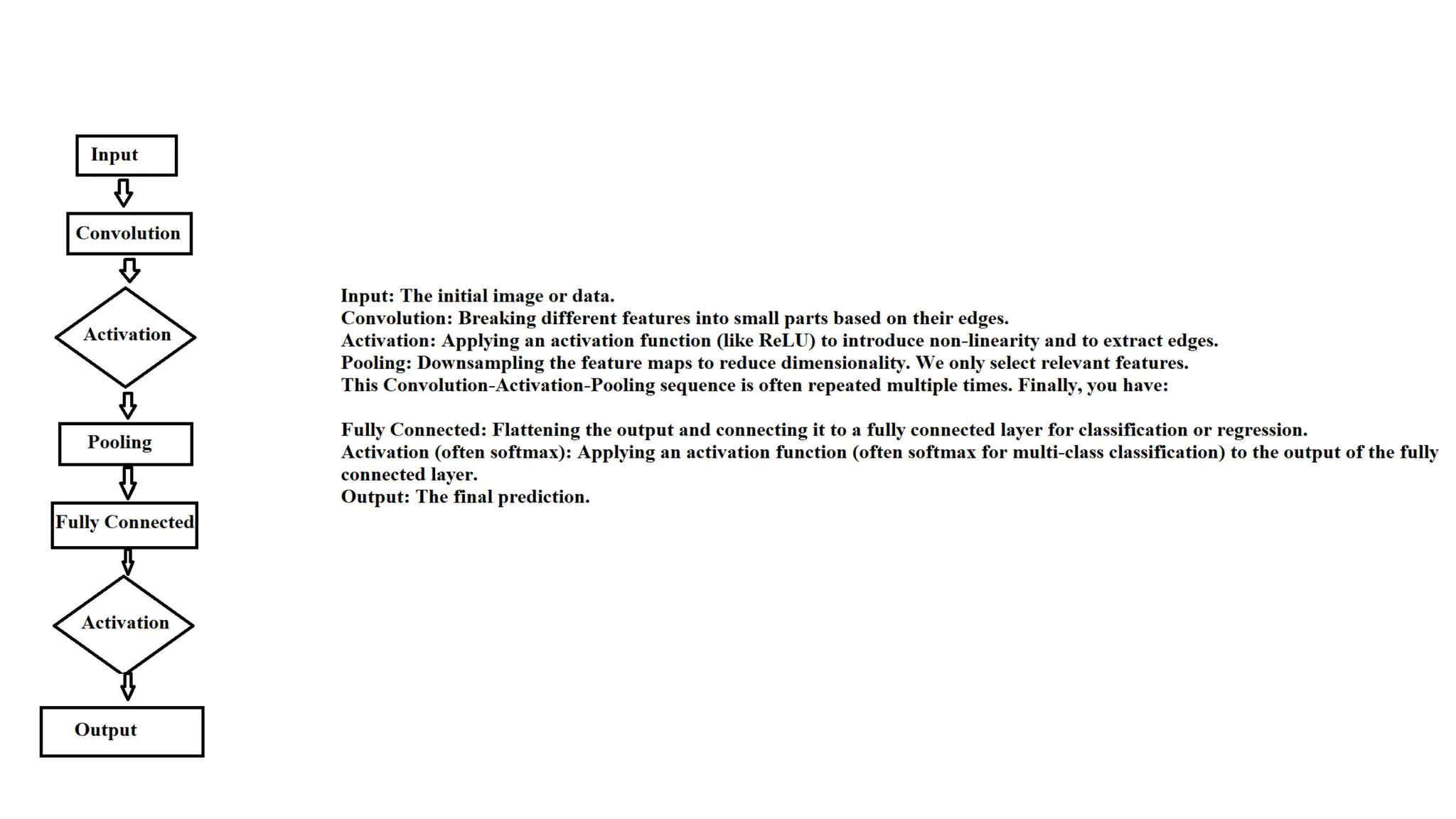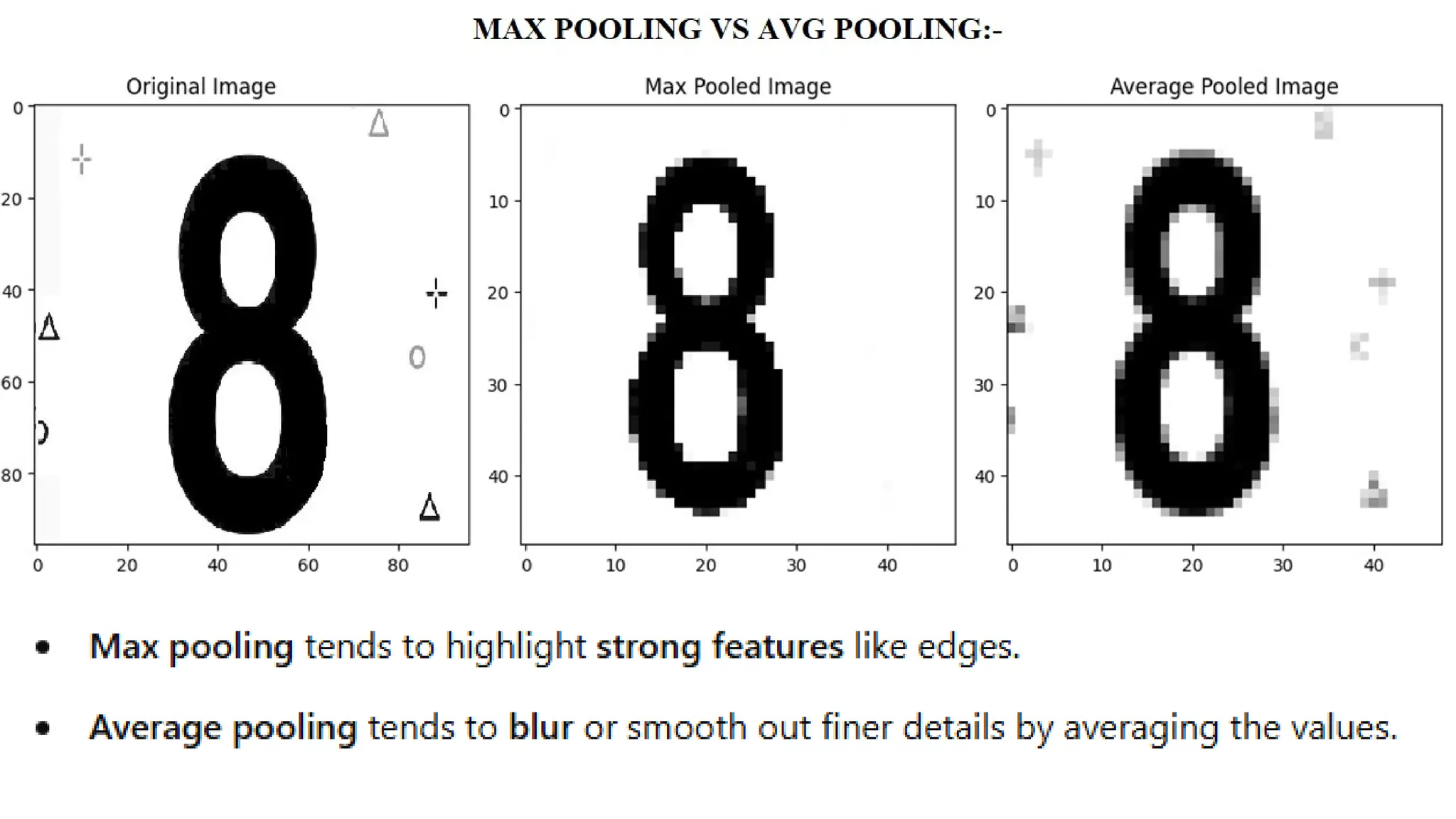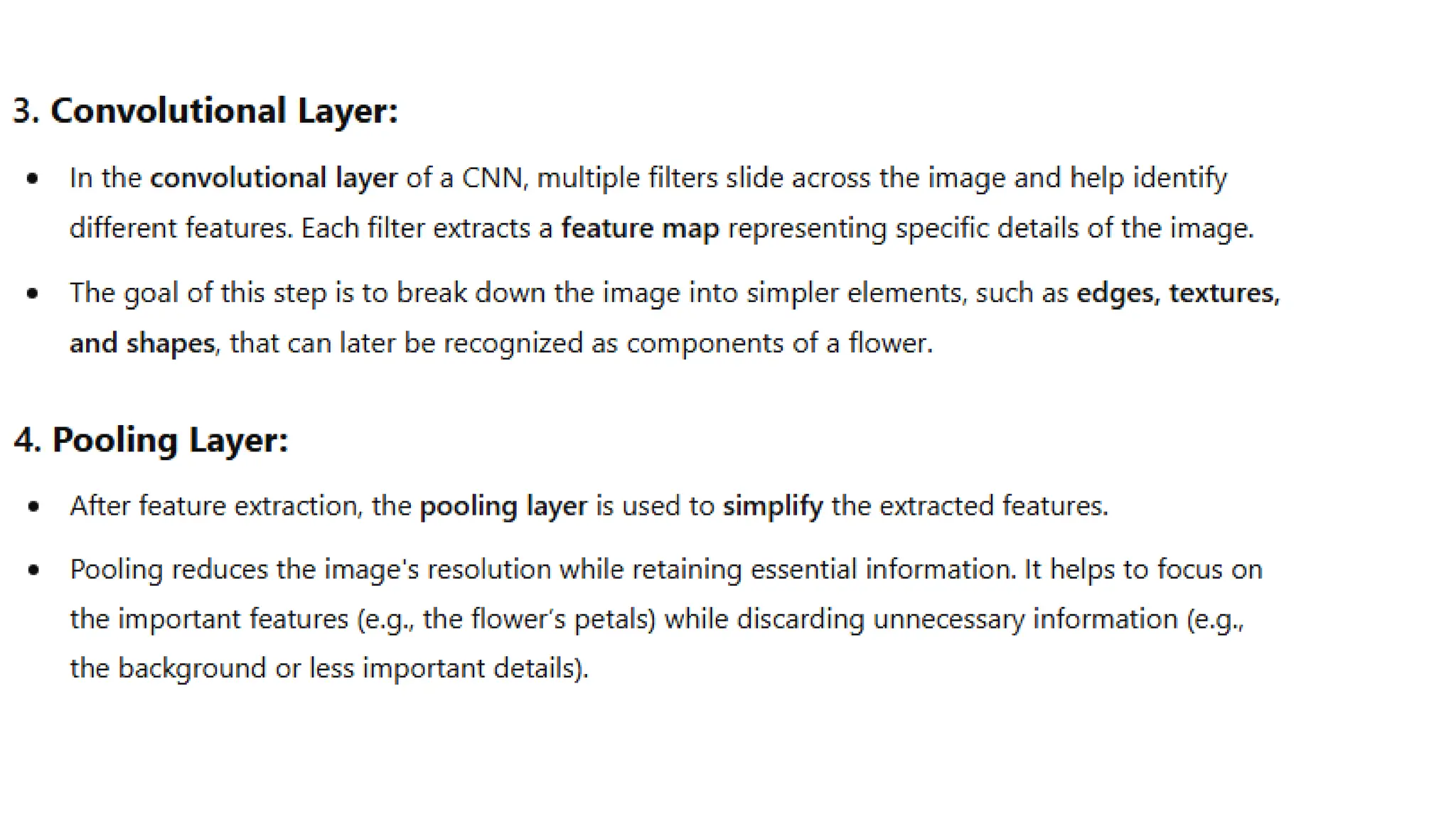 Pooling layers (such as max pooling or average pooling) reduce the spatial dimensions of the feature maps while preserving important information. This not only decreases computational load but also helps make the network more robust to small translations or distortions in the input. After several convolutional and pooling layers, the network flattens the high-level feature maps into a vector, which is passed through fully connected layers to produce the final output, such as class scores in image classification.