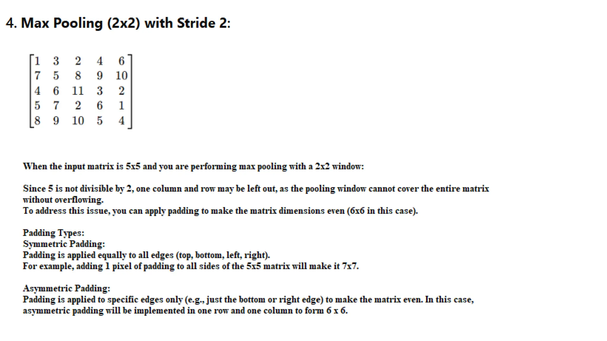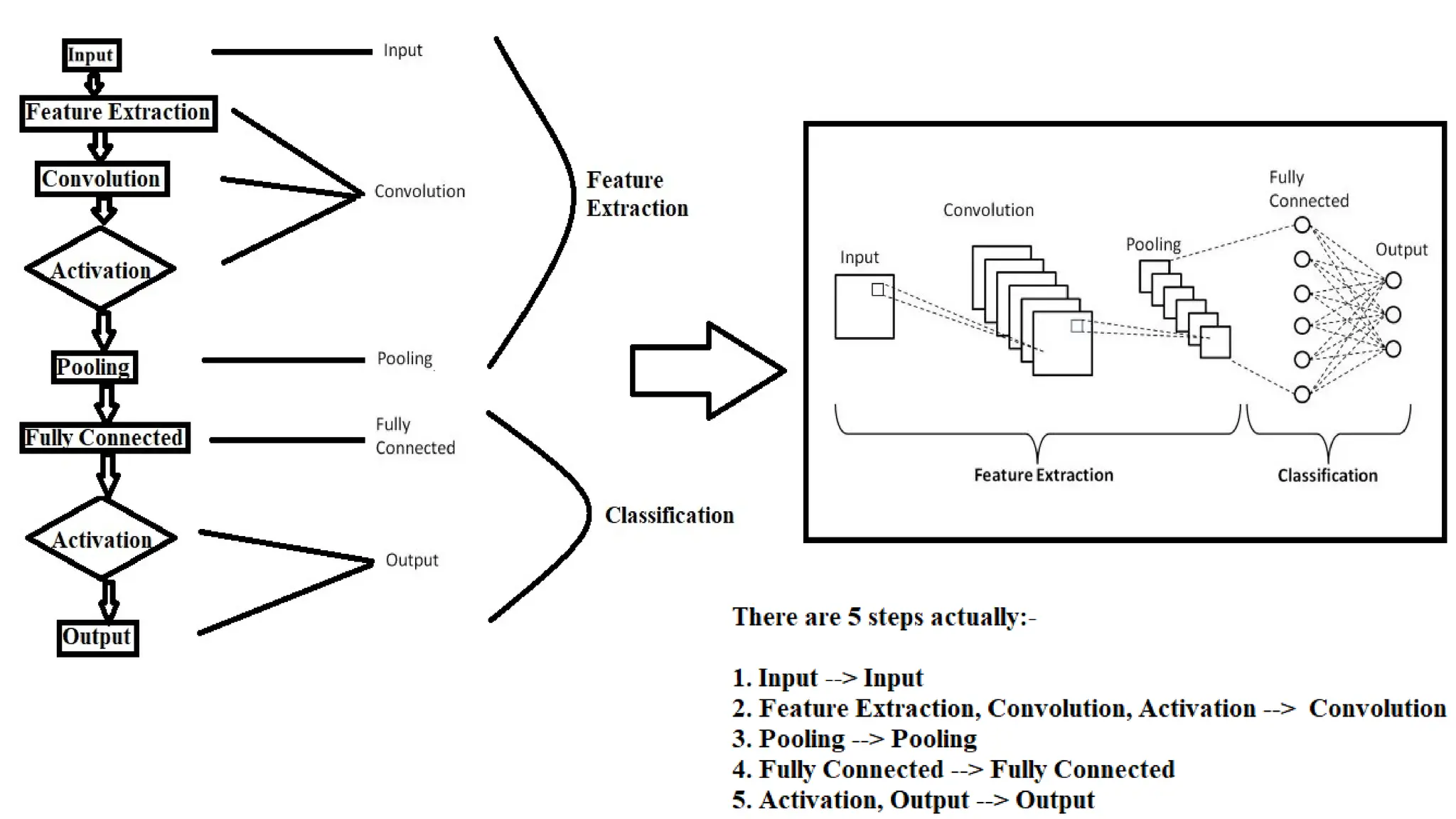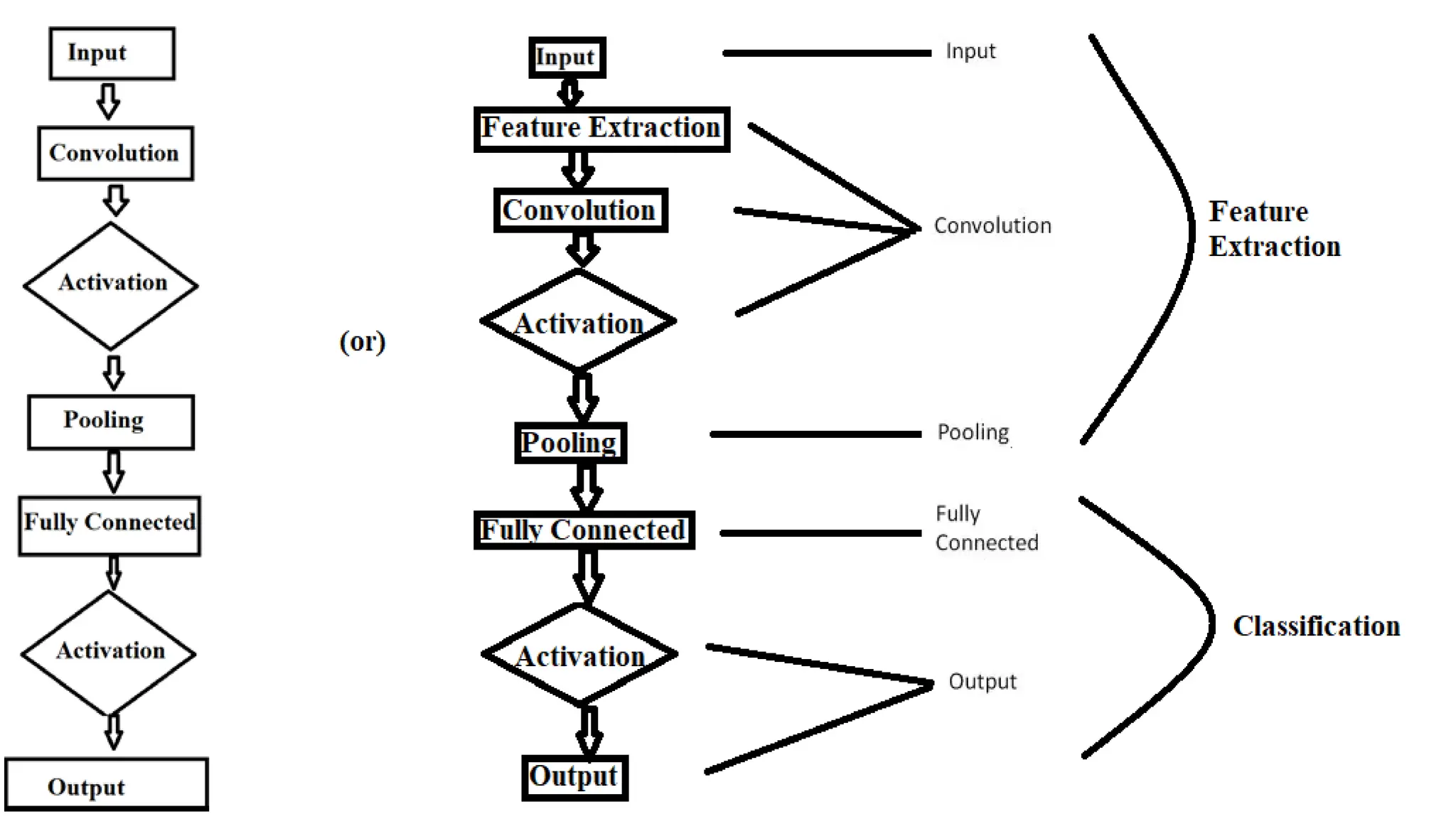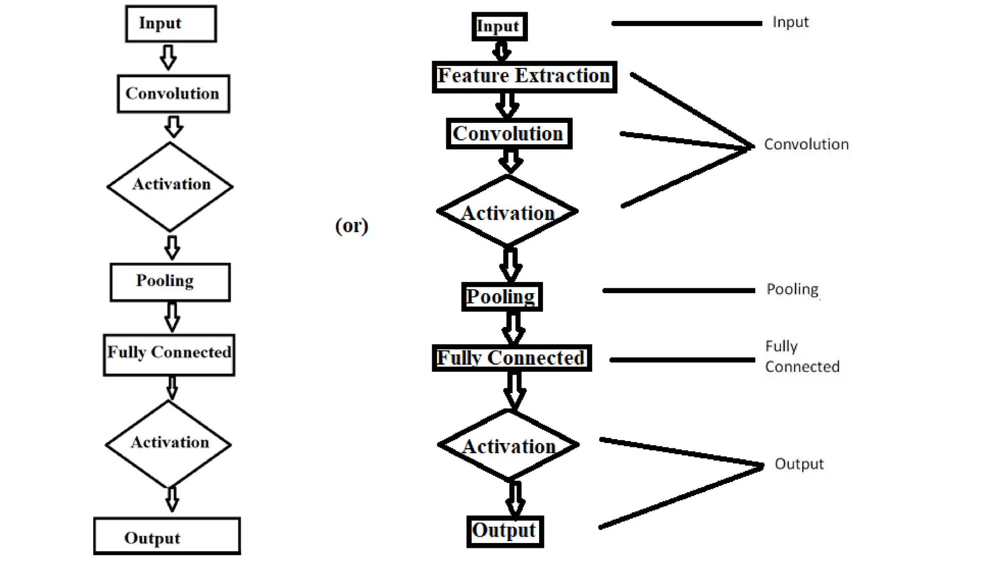 Pooling layers (such as max pooling or average pooling) reduce the spatial dimensions of the feature maps while preserving important information. This not only decreases computational load but also helps make the network more robust to small translations or distortions in the input. After several convolutional and pooling layers, the network flattens the high-level feature maps into a vector, which is passed through fully connected layers to produce the final output, such as class scores in image classification.