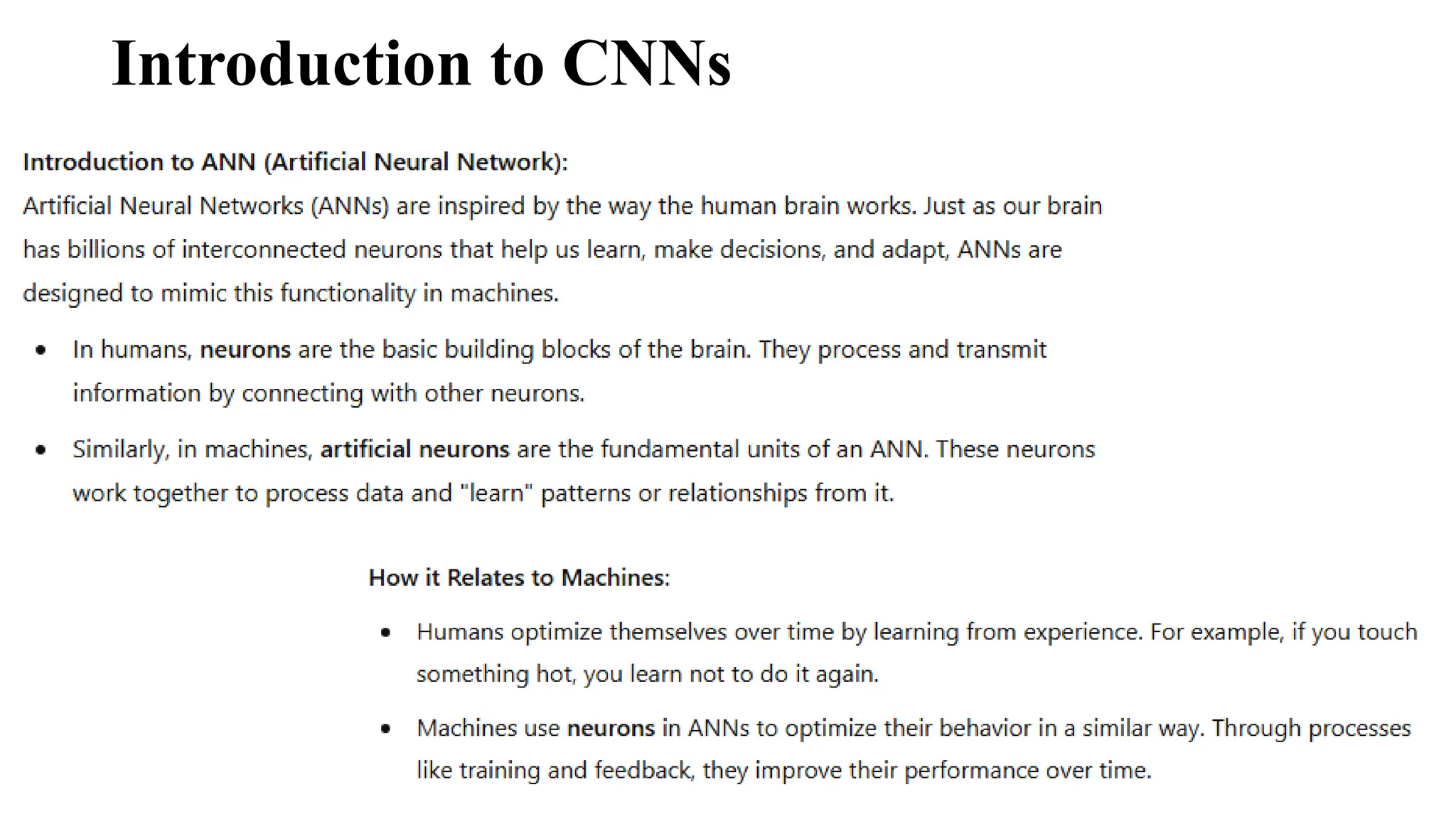Convolutional Neural Networks (CNNs) are a specialized type of deep learning architecture designed to process data with a grid-like structure, such as images, video frames, or even audio spectrograms. Unlike traditional fully connected neural networks, which treat every input feature independently, CNNs exploit the spatial and local structure of data. They automatically learn to detect patterns such as edges, textures, shapes, and entire objects by applying small filters (kernels) that scan across the input.