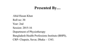 The presentation discusses deep venous thrombosis (DVT), defined as blood clots forming in deep leg veins, with prevalence rates, clinical features, risk factors, and management strategies outlined. Significant risks include prolonged immobilization, cancer, and certain medical conditions, with standard management involving anticoagulation and, in some cases, surgical intervention. The prognosis is critical, as untreated DVT can lead to fatal pulmonary embolism, highlighting the importance of early detection and treatment.
