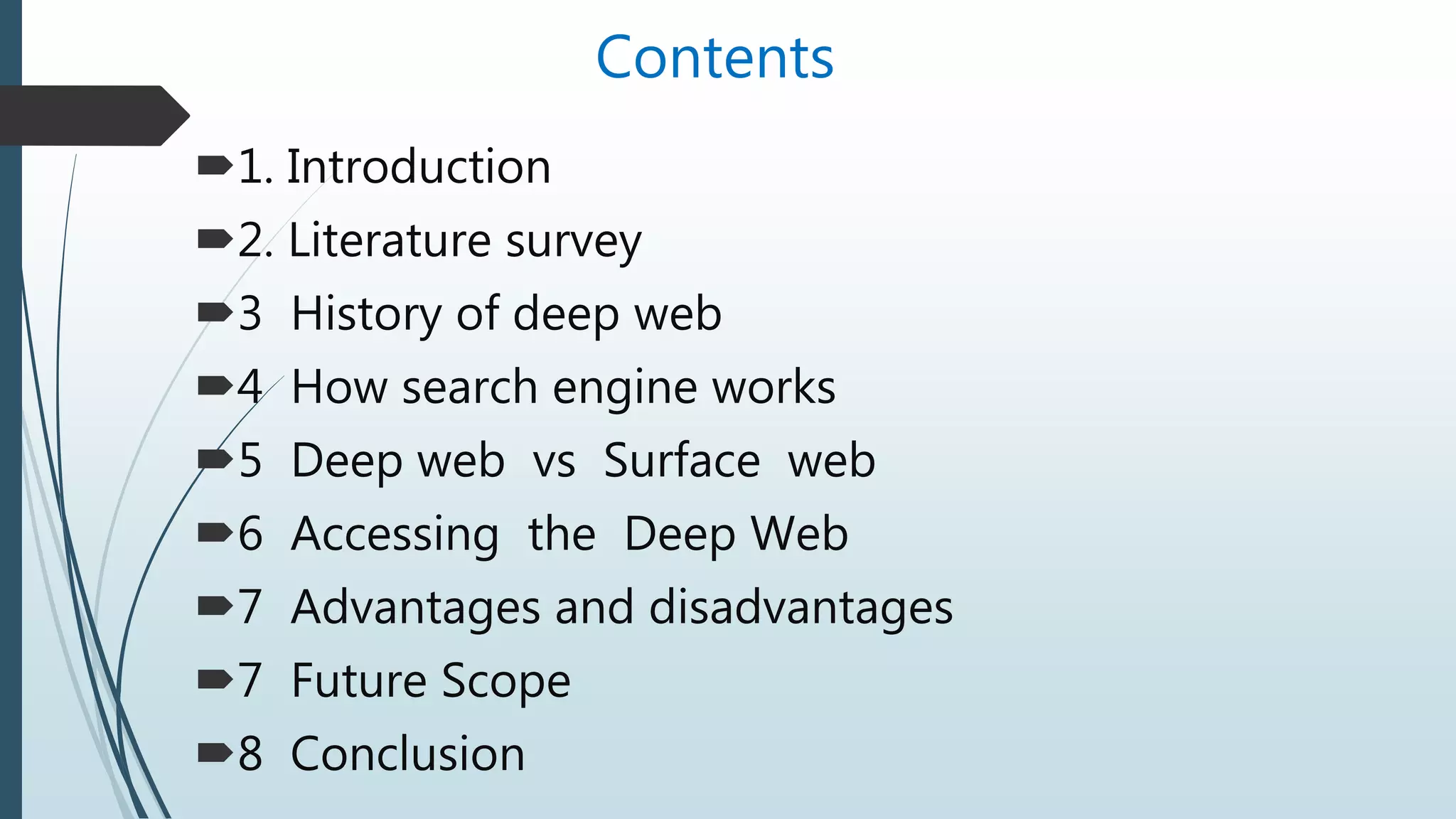 This seminar presentation provides an overview of deep web data extraction. It defines the deep web as content that is not indexed by typical search engines. The presentation covers the history of the deep web, how search engines work, differences between the deep web and surface web, how to access the deep web using tools like Tor, advantages and disadvantages of the deep web, and future applications. The presentation concludes that the deep web provides anonymous access to valuable information not easily accessible otherwise and will continue growing as more users seek online privacy and security.