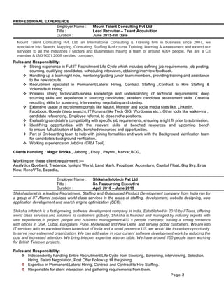 Deepika Rana has over 6 years of experience in IT recruitment. She has experience recruiting for a variety of IT roles across India through various sourcing channels. Her responsibilities included requirements gathering, sourcing candidates, screening, interviewing, negotiations and onboarding. She is proficient in recruiting for technologies such as Java, .NET, mobile and databases. Currently she is a Lead Recruiter at Mount Talent Consulting where she manages a team and handles clients such as Magic Bricks, Jabong and Paytm.