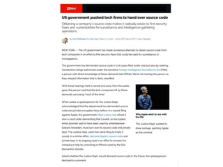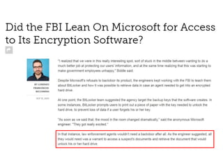This document appears to be a preview of slides for a presentation at DEF CON 24 about compelled decryption. The slides discuss the difference between first and third parties in communications and the Communications Assistance for Law Enforcement Act. It also lists several third parties like technology companies and individuals that could potentially be compelled to decrypt communications. The document indicates that it is a preliminary version and the slides may be altered before the actual presentation.