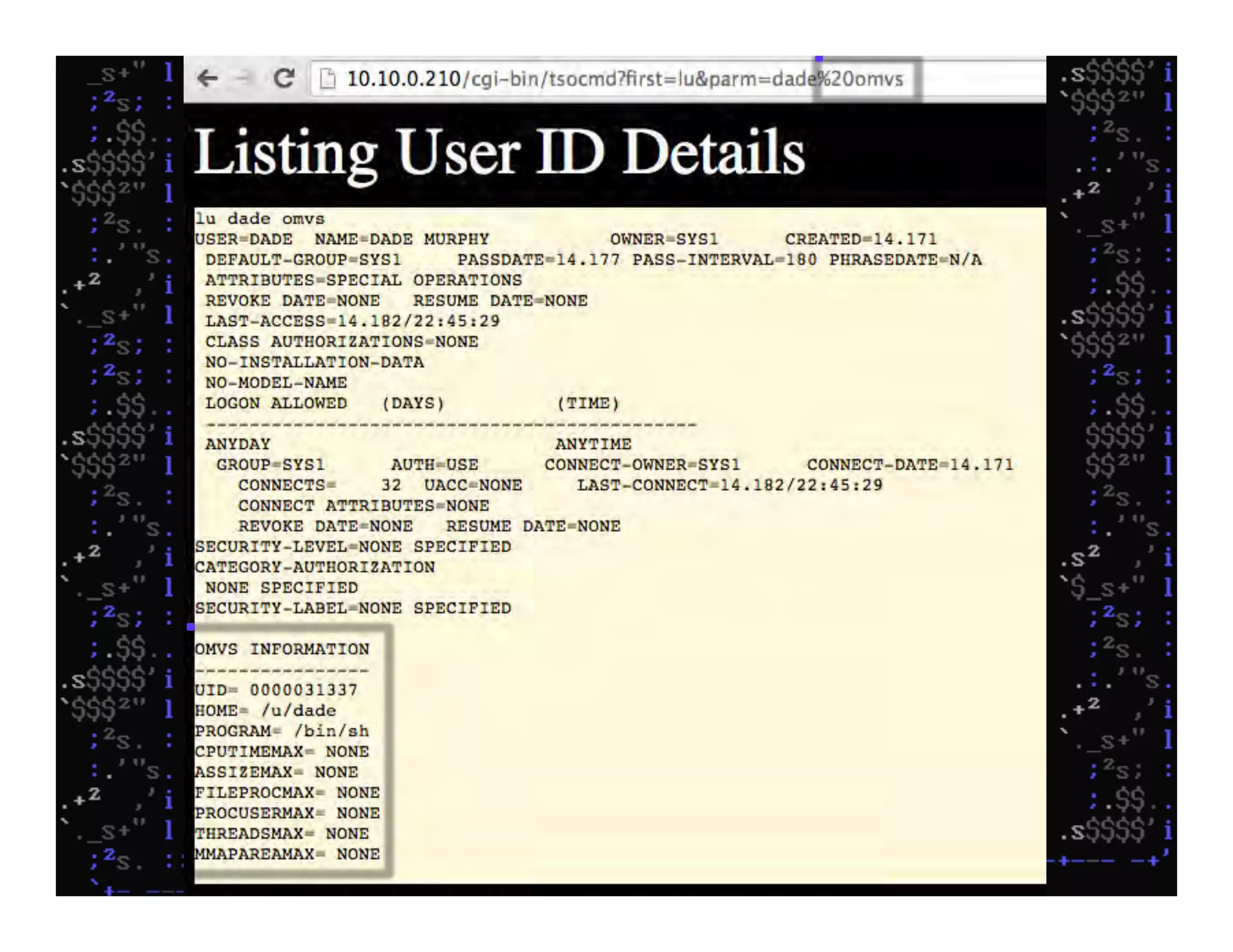 This document discusses hacking mainframe systems like IBM z/OS. It describes how the speaker was able to gain access to mainframes through methods like credential theft, exploiting vulnerabilities in programs like Tivoli NetView, and escalating privileges using tools to ultimately achieve root access. The speaker demonstrates hacking tools they have created like BIRP, TShocker, and Maintp that can be used to conduct reconnaissance of mainframes and execute code through techniques like FTP.