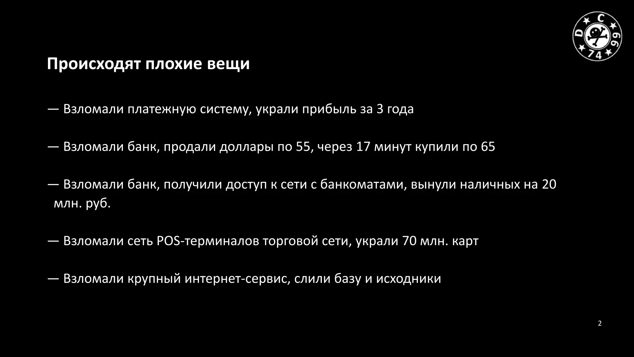 Документ описывает различные инциденты кибербезопасности, включая взлом платежных систем, кражу средств и использование вредоносного ПО для доступа к критическим системам. Также упоминаются методы повышения привилегий и манипуляции с наличными средствами. В заключение подчеркивается важность подготовки организаций к потенциальным угрозам и необходимость использования современных методов анализа инцидентов.