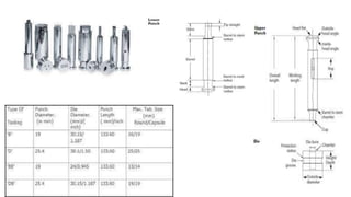 This document summarizes common defects that can occur during tablet processing and coating. It describes defects such as capping, lamination, picking and sticking that can happen during compression from factors like moisture content, tooling issues, and compression speed. Defects in film coating like roughness, orange peel effect, bridging and filling are also outlined along with causes and remedies. Various tablet tooling sizes and types are defined at the end.