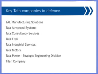 The document provides information about the Indian defence sector, including the history and evolution of the Indian Army, Navy, and Air Force. It discusses key conflicts and wars they were involved in, such as: