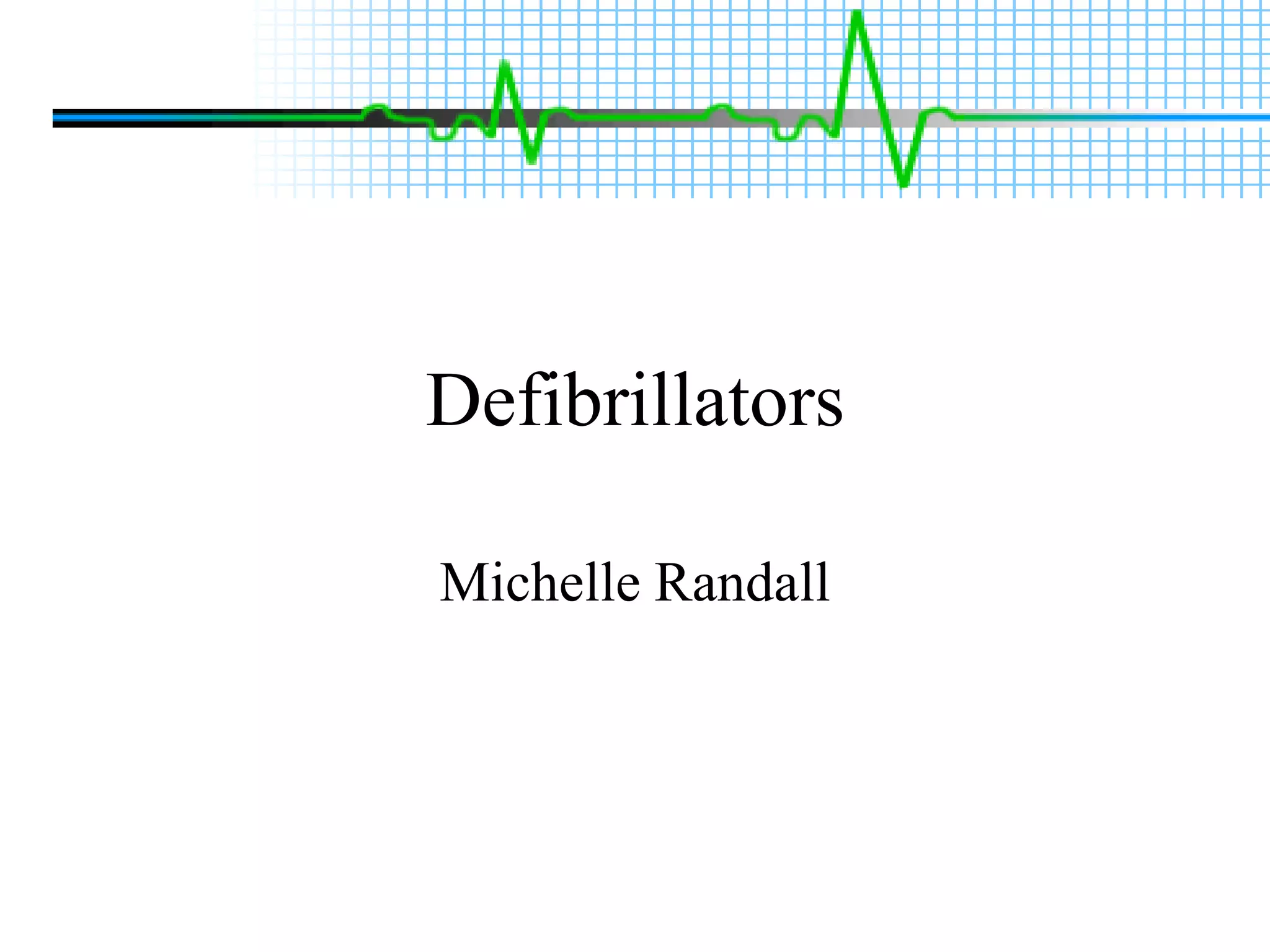 Automated External Defibrillators (AEDs) can shock the heart back into a regular rhythm when it stops pumping due to an irregular heartbeat. AEDs analyze the heart rhythm and advise if a shock is needed, making them easy for the public to use. Chances of survival from a heart attack decrease 10% each minute, so AEDs are important to have in workplaces and public areas. Implantable Cardioverter Defibrillators can also automatically detect and treat life-threatening heart rhythms with shocks.