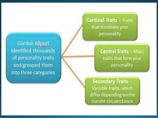 The document discusses various approaches to understanding personality, emphasizing the uniqueness of individuals and how their traits and situations influence behaviors, especially in the context of sports and exercise. The five main approaches include the psychodynamic, trait, situation, interactional, and phenomenological approaches, each offering different perspectives on personality dynamics. It concludes by noting the importance of distinguishing between personality traits and situational states to effectively understand and predict behavior.