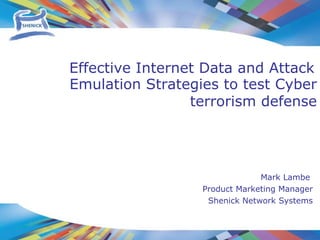 The document discusses various strategies for testing cyber-terrorism defenses, highlighting the dangers of ignorance and lack of basic computer skills among individuals. It outlines the distinctions between visible and invisible threats, countermeasures against cyber crimes, and emphasizes the importance of performance testing with unique traffic flows. Additionally, it introduces 'DiversifEye,' a tool for emulating real-world client interactions and analyzing network performance in various environments.