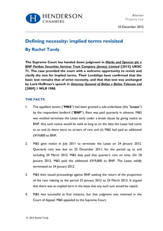 The Supreme Court's ruling in Marks and Spencer plc v BNP Paribas clarified the strict necessity test for implying terms in contracts, reaffirming that the established criteria were unchanged by previous judgments. The court determined that an implied term allowing the apportionment of advance rent in the lease was not met, as the legal principles could not be overridden. This case underscores the need for clear contractual clauses regarding rent refunds when breaking a lease, as tenants typically cannot claim refunds for rent paid in advance.