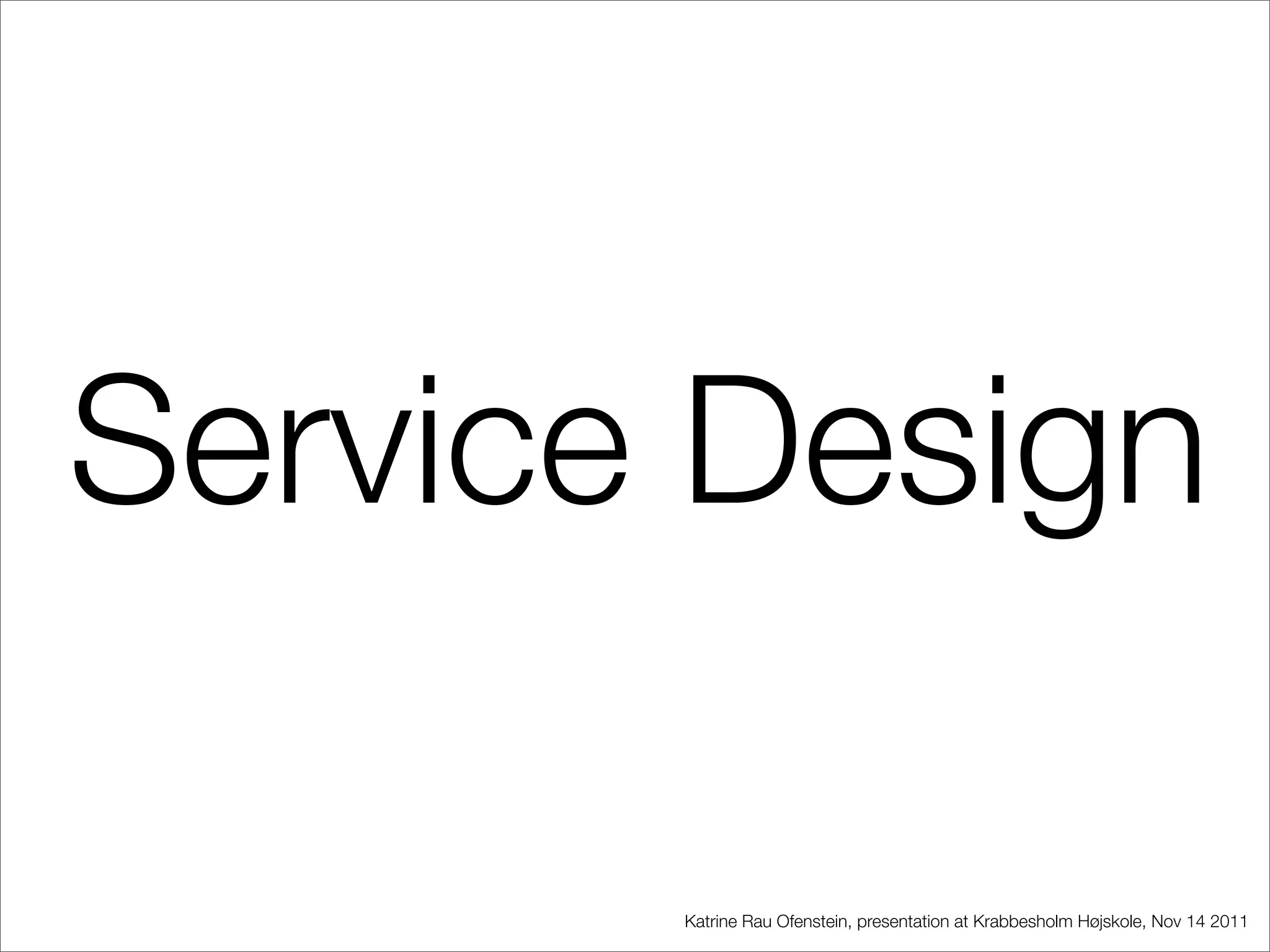 Katrine Rau Ofenstein gave a presentation on service design at Krabbesholm Højskole on November 14, 2011. She discussed where services can be found, such as in governments, non-profits, businesses and more. She defined service design as planning people, infrastructure, communication and materials to improve quality and customer interactions. Unlike product design, service design cannot prescribe exact results from customer interactions. Effective service design considers the actors involved, service scenarios and components used. Tools like customer journey maps are also important.