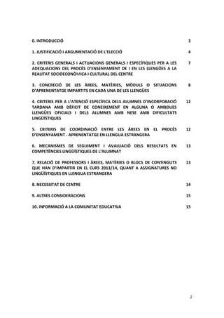 2. CRITERIS GENERALS I ACTUACIONS GENERALS I ESPECÍFIQUES PER A LES ADEQUACIONS DEL PROCÉS D’ENSENYAMENT DE I EN LES LLENGÜES A LA REALITAT SOCIOECONÒMICA I CULTURAL DEL CENTRE