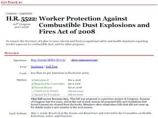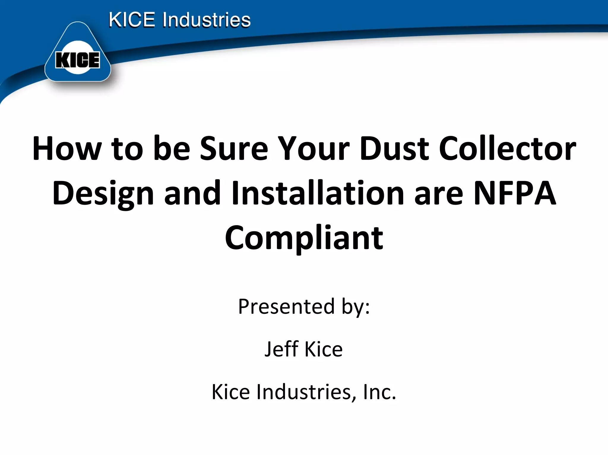 This document discusses NFPA 68, the standard for explosion protection by deflagration venting. It explains that NFPA 68 provides mandatory requirements for dust collector design and installation to be compliant. Key aspects covered include definitions of terms like deflagration index (Kst), determining the maximum pressure (Pmax) a system can withstand, vent sizing requirements, alternative venting arrangements, and maintaining ongoing compliance through documentation, inspection, maintenance and training.