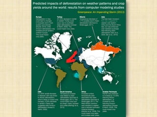 The document discusses deforestation, outlining its causes, current status, and both short- and long-term effects on the environment and economy. It highlights the significant impact of human activities such as housing construction, logging, and agriculture, which lead to the degradation of vital forest ecosystems. Solutions are proposed for corporations, governments, and individuals to combat deforestation and promote sustainable practices.